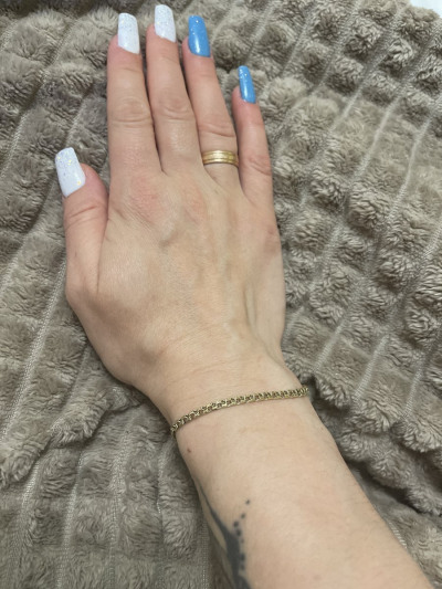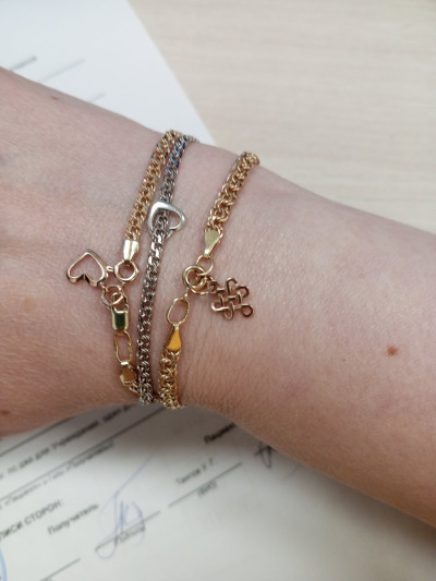 Браслет из жёлтого золота, очень красивый и самое главное очень удобный. На руке ощущение лёгкости. Теперь мой любимый браслет, ношу не снимая. Рекомендую!