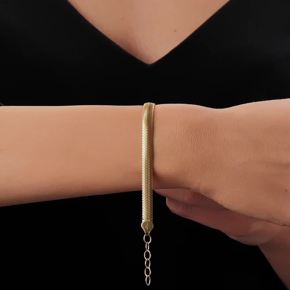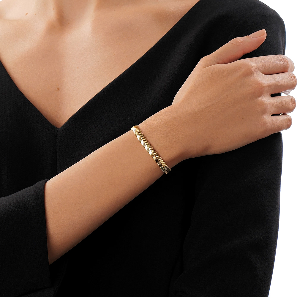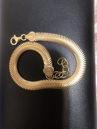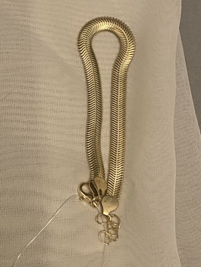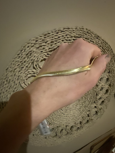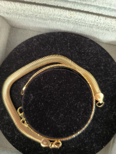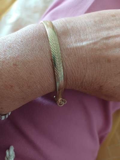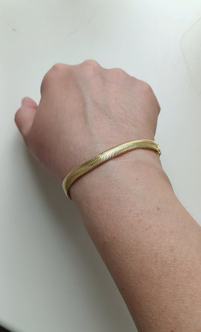 Мне очень понравился этот браслет, плоский, красивый, похож на жёлтое золото. Надеюсь позолота быстро не облезет.