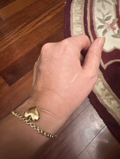 Оригинальный браслет, такой же как на сайте. Звенья толстенькие, не полые. Сердечко полое. В целом очень добротный, не вычурный. Согласна со всеми предыдущими отзывами, размеры такие же. Ну, а то что царапины останутся, золото мягкий металл, это неизбежно для любых изделий из золота. Отдельное спасибо девочкам-консультантам, всегда посоветуют и подскажут! Спасибо!🙏