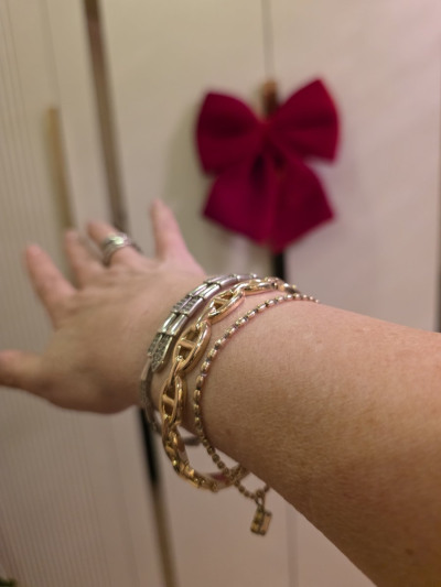 Браслет хороший, модный, современный. Хорошо сочетается с другими украшениями. Застёжка надёжная, вес браслета 13 гр. К покупке рекомендую.
