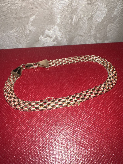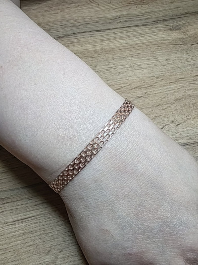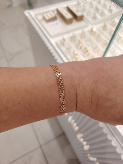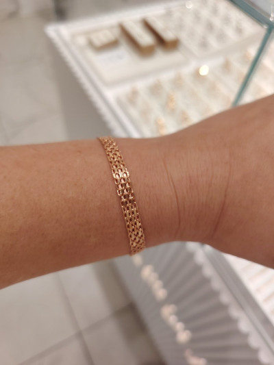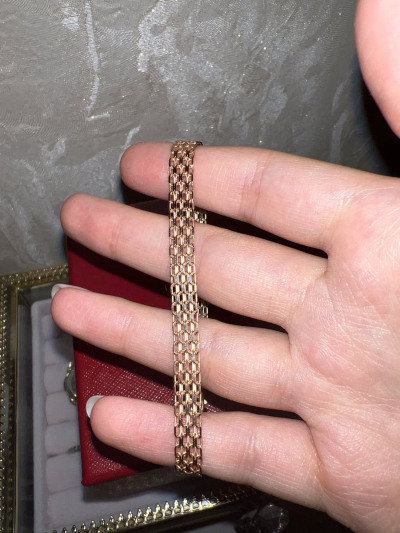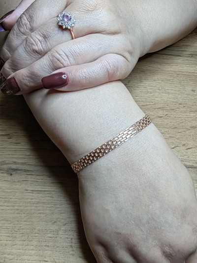Долго выбирала браслет и наконец остановилась на золотом с плетением «двойной Бисмарк» 585 пробы. Не прогадала! Во-первых, он полновесный — чувствуется добротность. Во-вторых, смотрится на руке просто бомбически: не слишком массивный, но и не тонкий, идеально ложится. Качество выше всяких похвал — никаких шероховатостей, всё аккуратно. Теперь ношу не снимая!