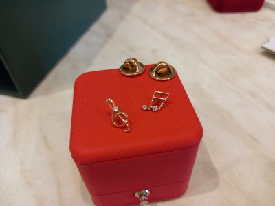 Милый маленький скрипичный ключик и золотые нотки = отличный дуэт. Ношу их на воротнике белой рубашки. Обожаю.