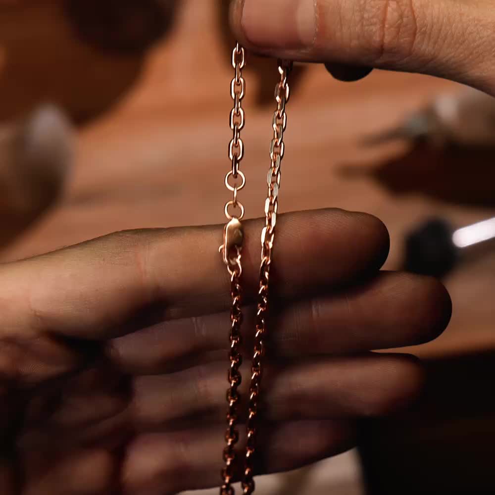 Якорное плетение - настолько надежное, что можно "вешать якорь". Звенья расположены под прямым углом друг к другу, от чего цепь получается объемной и крепкой. Плетение универсально, подходит и женщинам, и мужчинам. Классическая якорная цепь состоит из звеньев продолговатой формы с закругленными концами. Для усиления блеска края обрабатывают алмазной гранью.