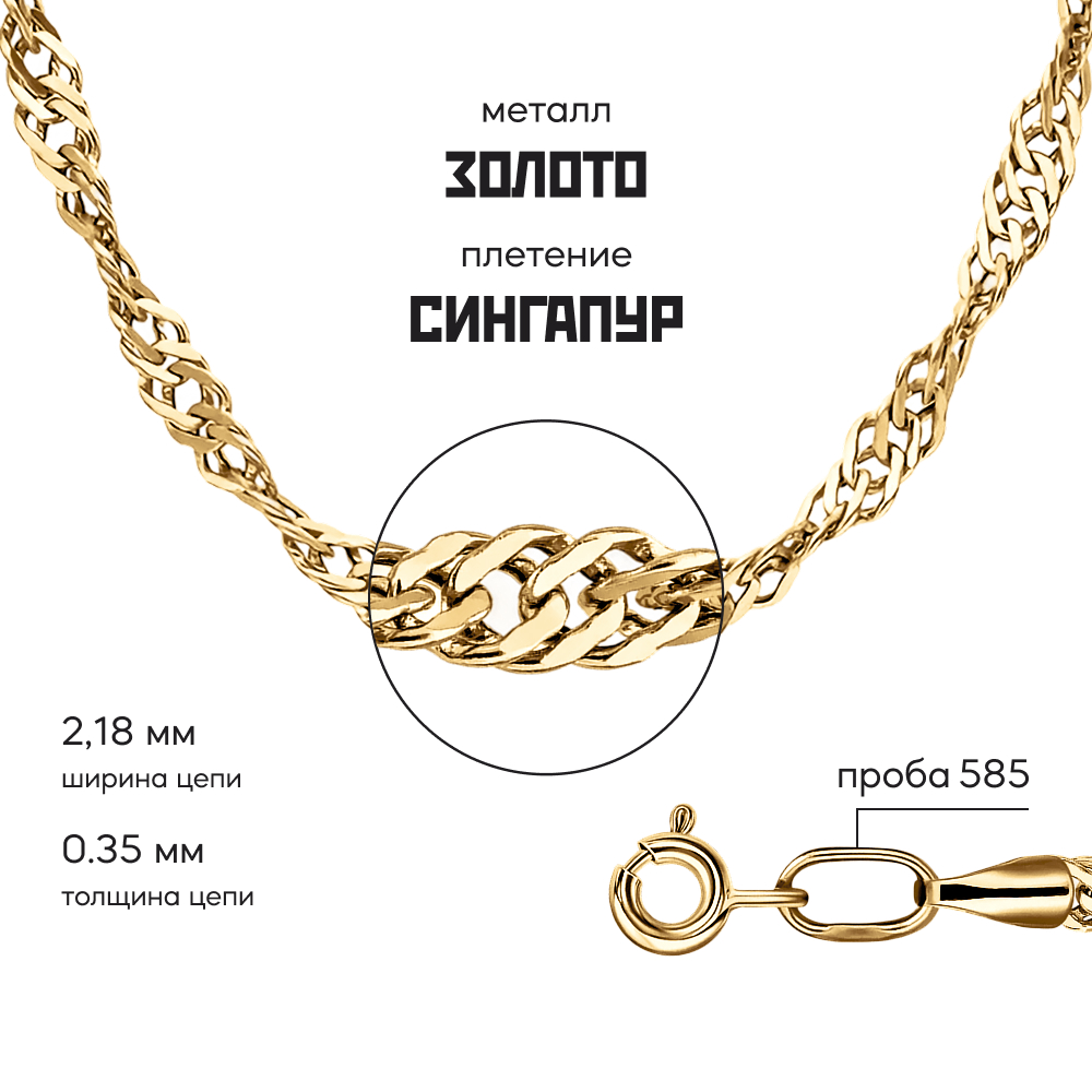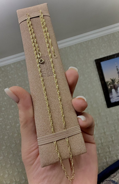 Смотрится прекрасно, плетение Сингапур великолепное, в лимонном золоте. Не тонкая, вся блестит и переливается. Очень богато выглядит.