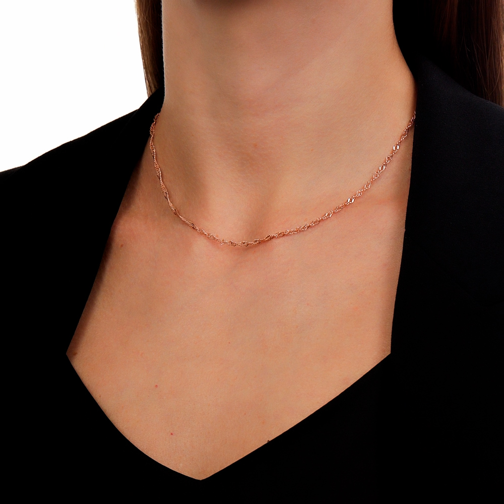 Панцирное плетение пользуется большой популярностью при изготовлении цепочек. Если в якорном плетении цепей звенья располагались перпендикулярно друг к другу, то в панцирном – в одной плоскости. Благодаря такому способу золотая цепочка имеет гладкую поверхность и выглядит как единое целое. Внешне способ размещения звеньев напоминает кольчугу-панцирь, от этого и пошло название данного способа плетения золотой цепи. Такие украшения также отличаются высокой прочностью.