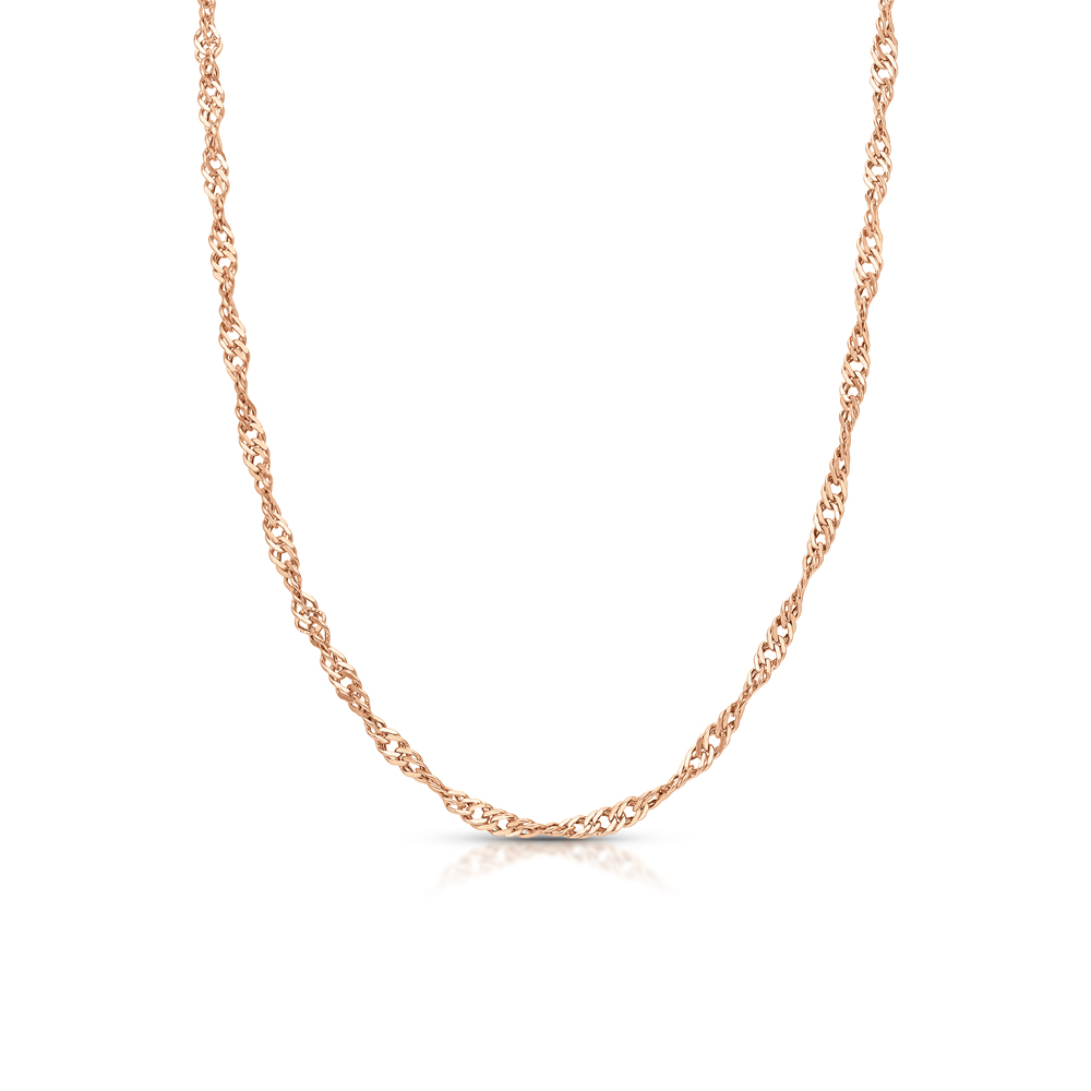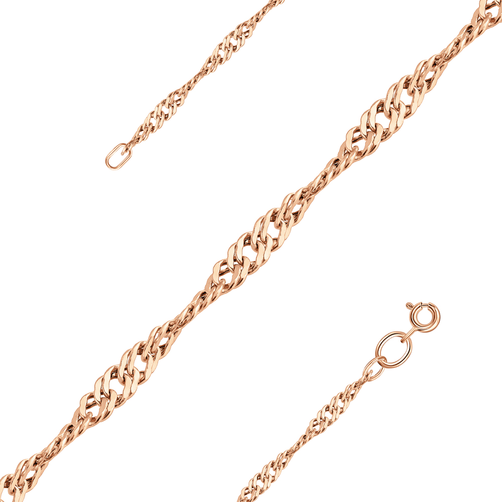 "Сингапур" - плетение на основе двойного панцирного плетения. Звенья в цепи соединены в сложную спиралевидную структуру, обеспечивая потрясающий блеск от солнечных лучей под разным углом.