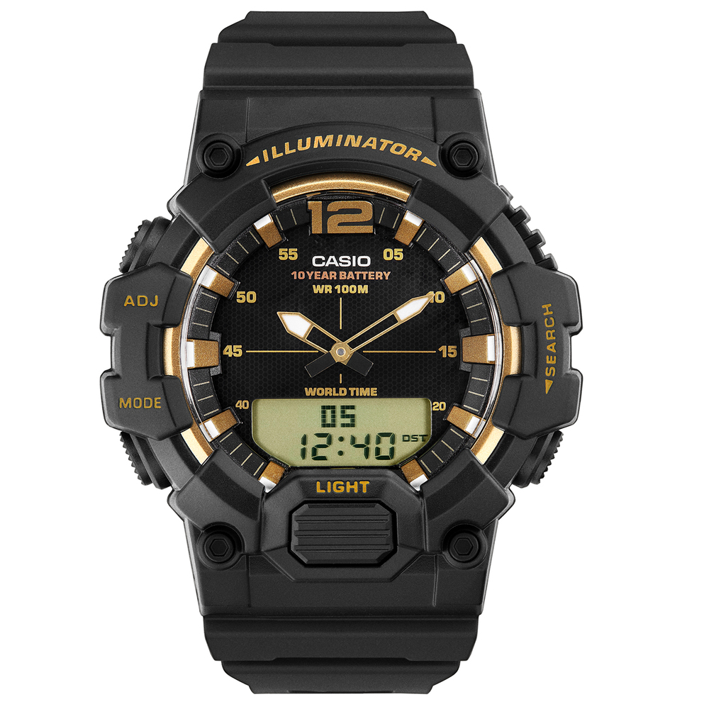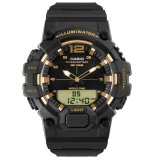 Японские молодежно-спортивные кварцевые мужские часы Casio серии Collection Men в пластиковом корпусе. На дополнительном электронном циферблате выводятся функции текущего времени, таймера, секундомера. Яркая электролюминесцентная подсветка включается скнопкой. На стрелках часов нанесено необрайтовое покрытие, обеспечивающее длительное послесвечение в темноте даже после кратковременного нахождения на свету. Часы снабжены механизмом позволяющим часам служить Вам до 10 лет не меняя элемента питания. Ремешок из гибкого пластика снабжен класической застежкой. Данная модель имеет и водозащиту 10 атмосфер, что позволяет в часах спокойно плавать.