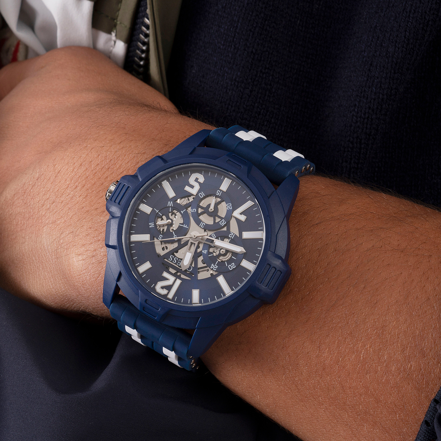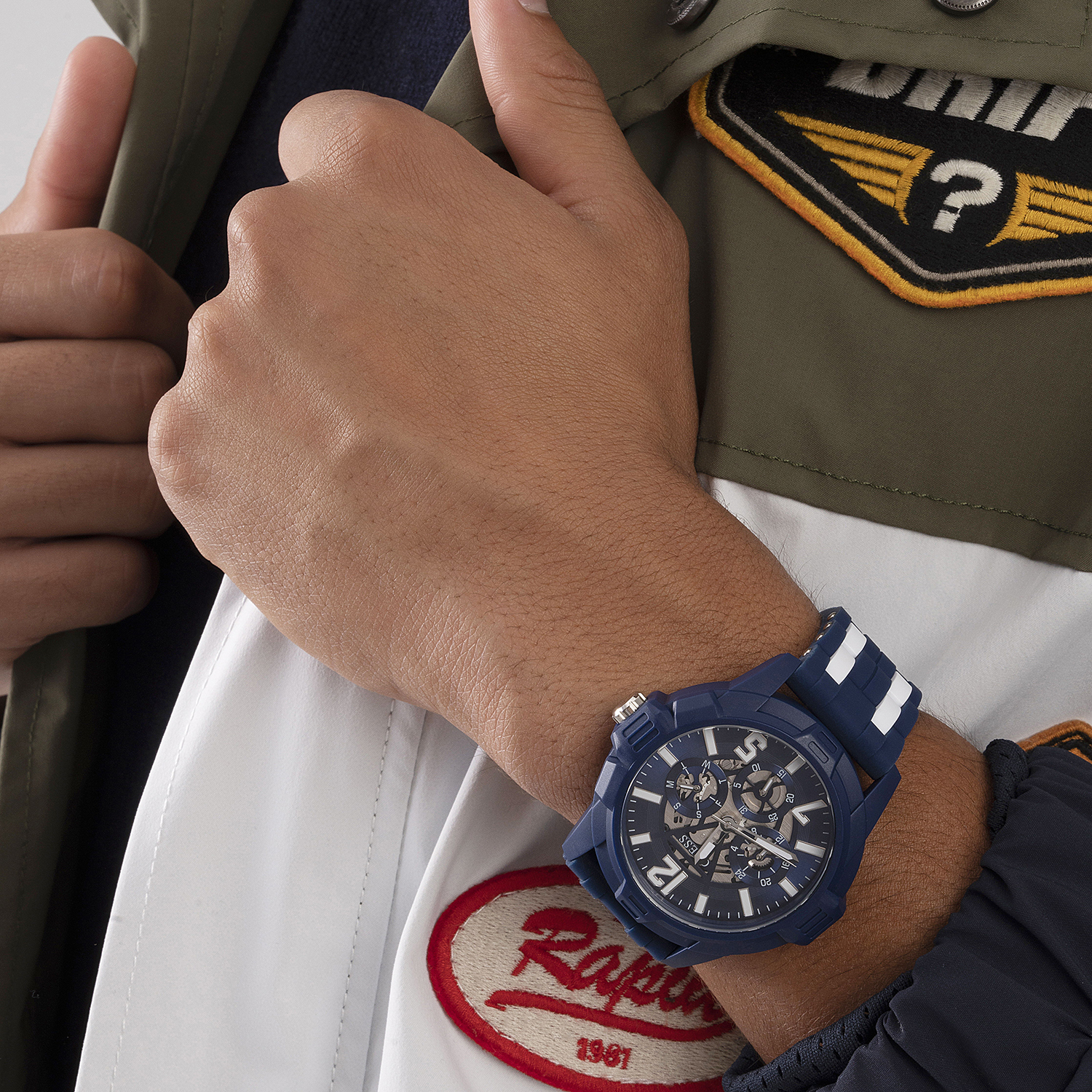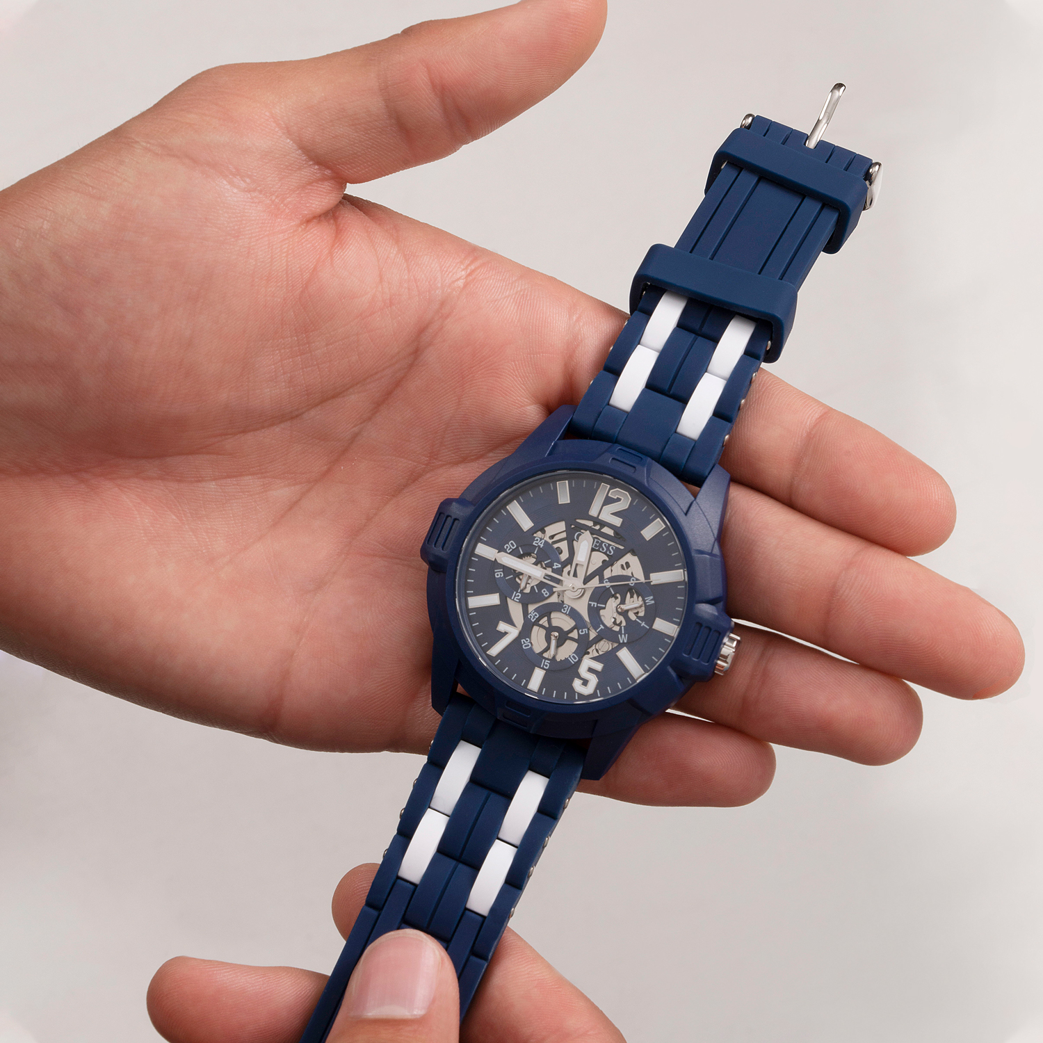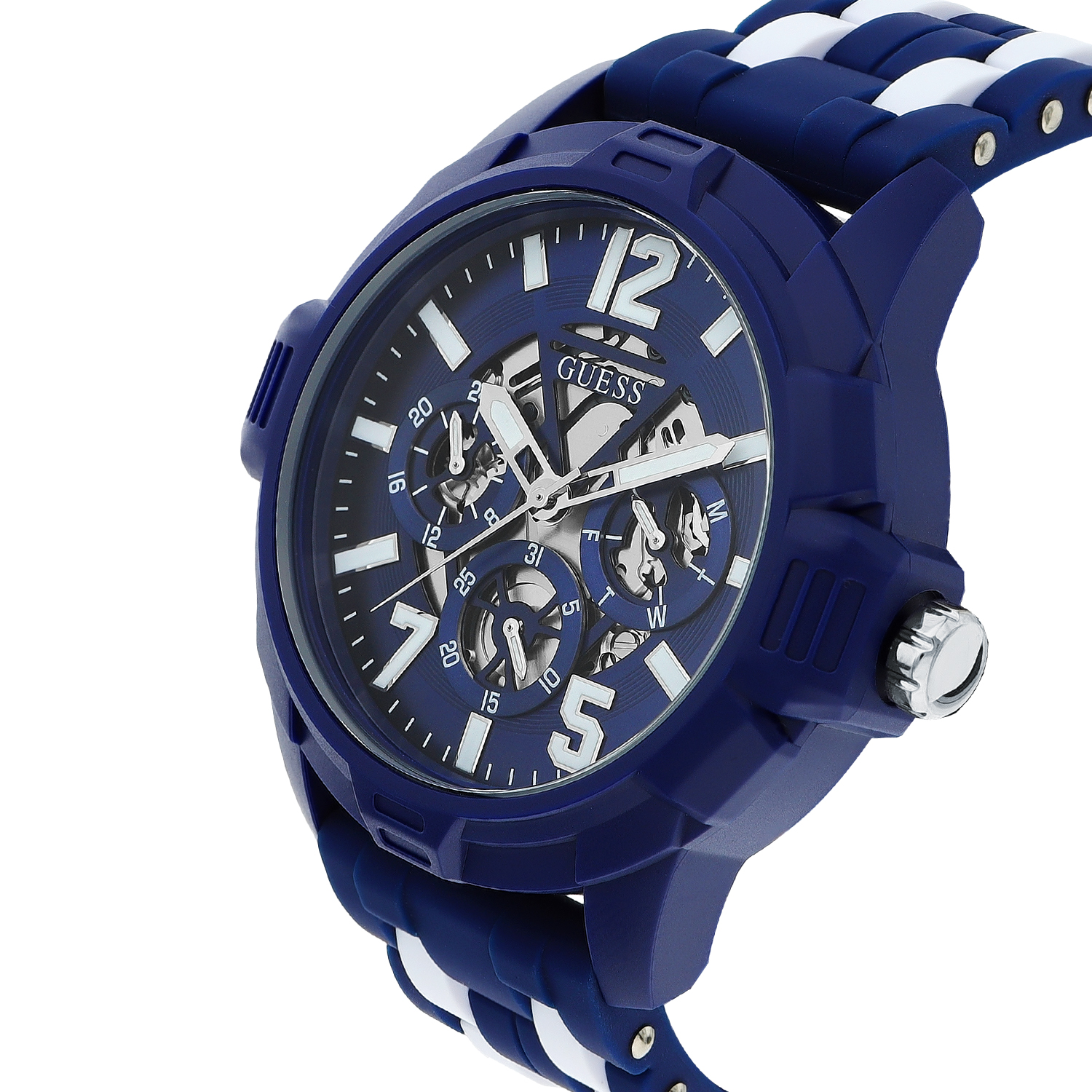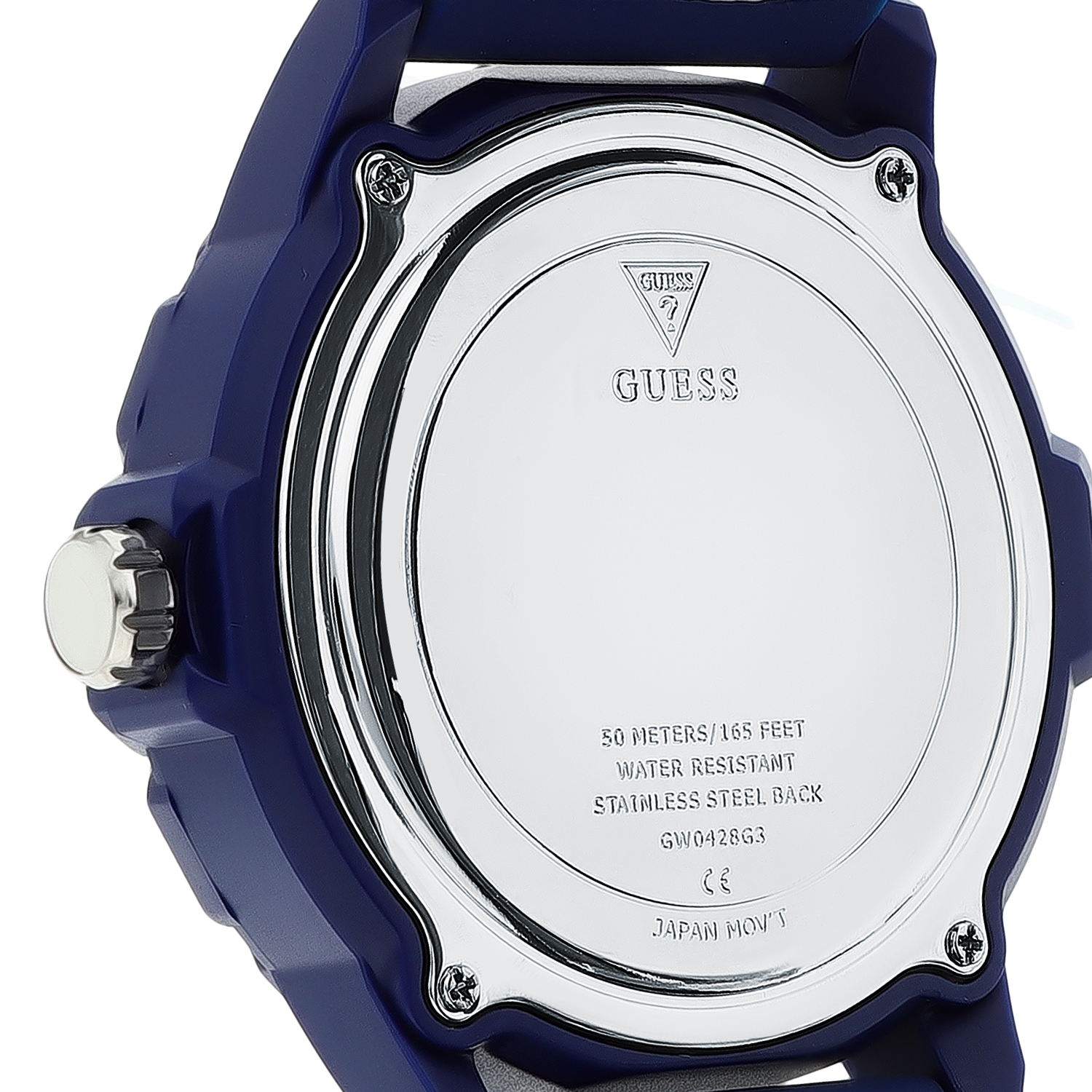Мужские наручные часы GUESS модель GW0428G3 из коллекции GUESS SPORT. Японский кварцевый мультифункциональный механизм VX7JE1 SEIKO (TMI) с вынесенными на отдельные циферблаты датой, днем недели и часовой стрелкой в режиме 24 часа использующий элемент питания SR927SW. Нейлоновый корпус размера 48 мм. Минеральное стекло. Ремешок из комбинации силикона и нейлона. Водостойкость 5 АТМ (мытье рук, дождь). GUESS – лидер в индустрии фешен часов по длительности присутствия на рынке и по ширине коллекции, ежегодно создает более 100 новинок. Компания GUESS Watches, основанная в 1984 году в Лос-Анджелесе (США) как пионер революции, возглавила трансформацию часов из простого инструмента для определения времени в стильный аксессуар. Бренд не боится экспериментировать. Разнообразные формы корпуса, сложно декорированные циферблаты, уникальный дизайн браслетов. GUESS – это про тренды и технологии в мире моды. Это яркие и дизайнерские часы, призванные угодить самым смелым фешн-драйверам и энтузиастам моды по всему миру. Страна-изготовитель: Филиппины. При изготовлении используются только надежные Японские механизмы. ВНИМАНИЕ! Заявленная водостойкость гарантируется только при плотно закрытой или закрученной заводной головке!