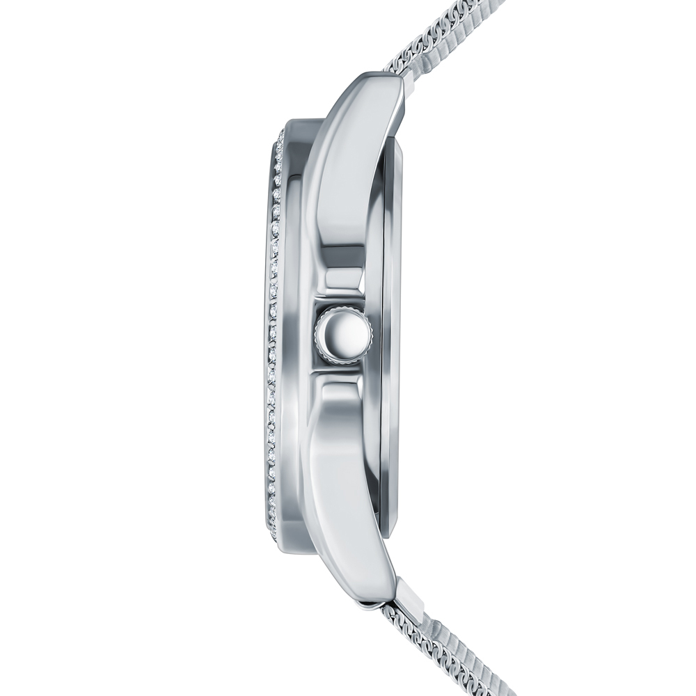 Корпус выполнен из металла*, минеральное стекло с антибликом защищает циферблат от внешнего воздействия. Японский кварцевый механизм Seiko VX3J обеспечивает точный ход и оснащен функциями времени в 12/24 часовом формате, секундной стрелки, даты и дня недели. Водозащита 3 bar (30 m/99 ft) защитит от брызг и дождя.