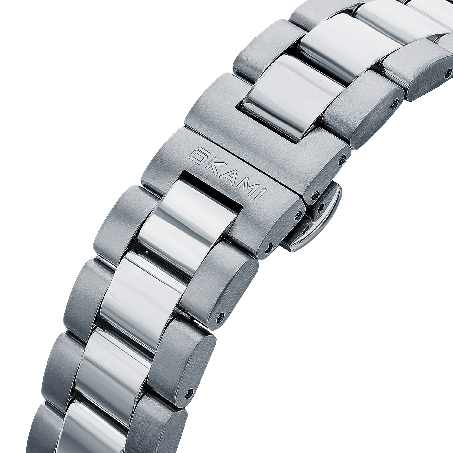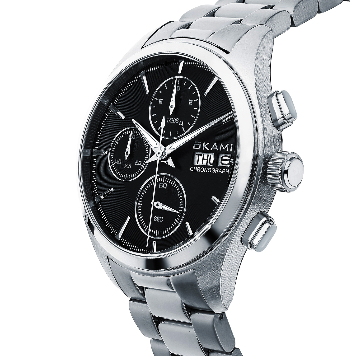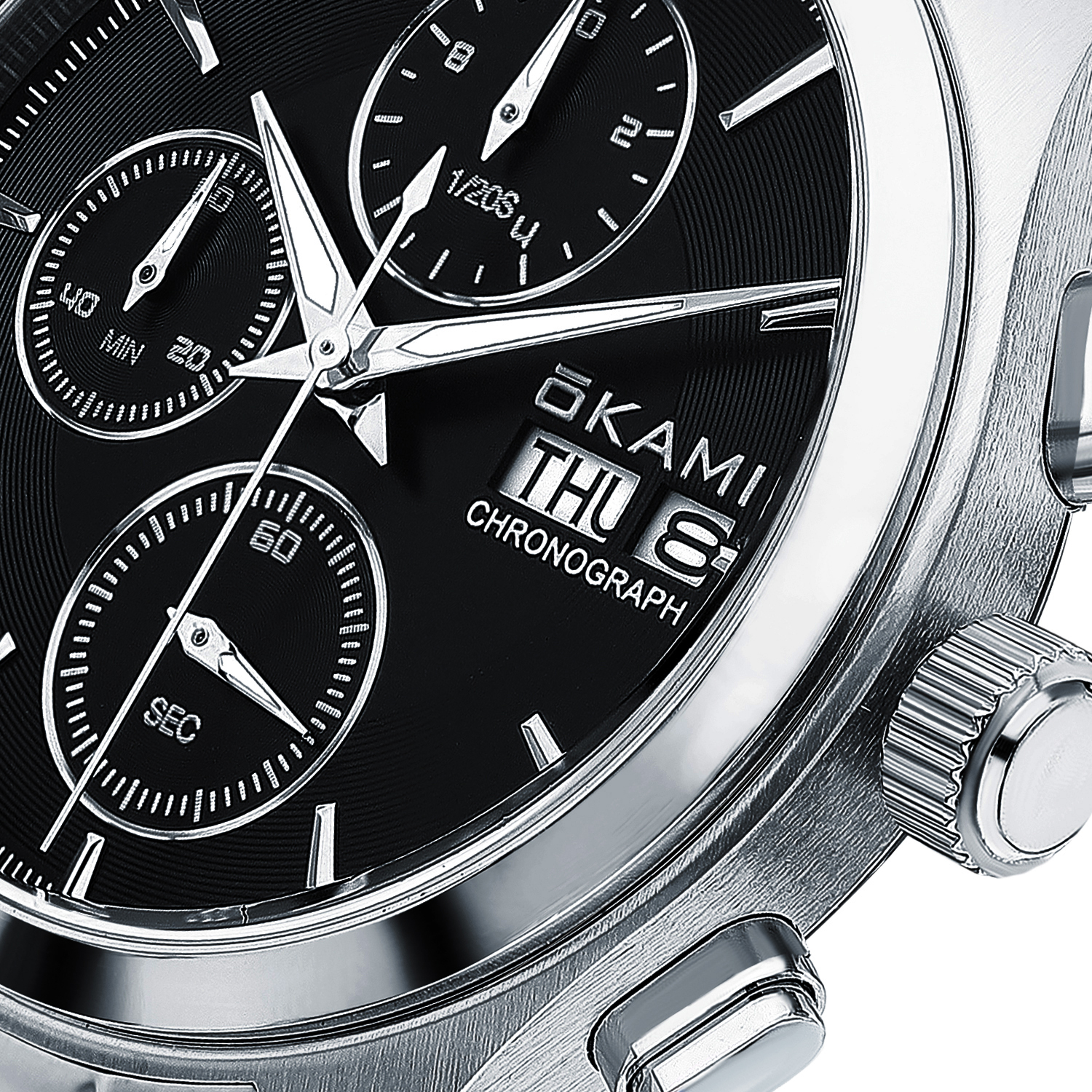 Корпус выполнен из стали, минеральное стекло с антибликом защищает циферблат от внешнего воздействия. Японский кварцевый механизм Miyota 0S00 обеспечивает точный ход и оснащен функциями времени в 12 часовом формате, секундной стрелки, даты, дня недели и хронографа. Водозащита 10 bar (100 m/330 ft)* позволяет плавать в часах.