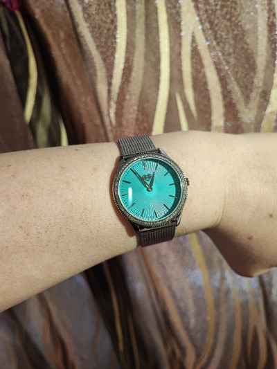 Не первые часы этооо бренда, но не устояла. Часы очень понравились. Цвет циферблата потрясающий. Очень нарядные.