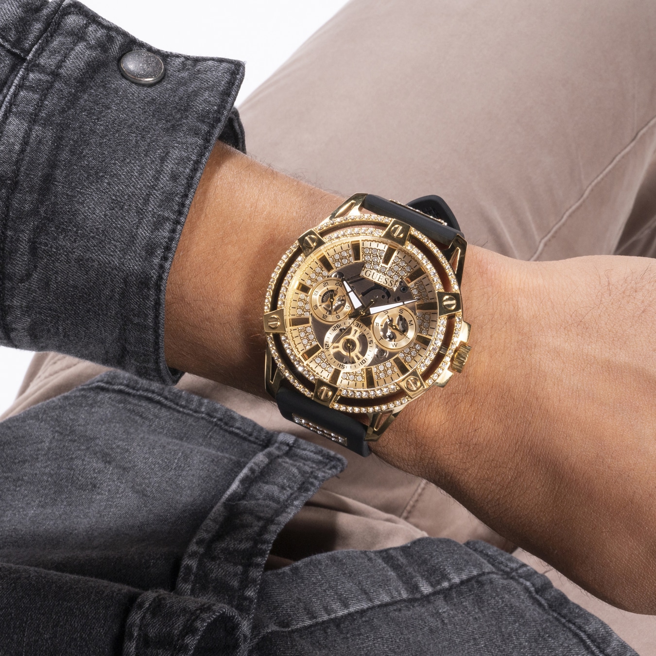 Мужские наручные часы GUESS модель GW0537G2 из коллекции GUESS TREND. Японский кварцевый мультифункциональный механизм VX7JE2 SEIKO (TMI) с вынесенными на отдельные циферблаты датой, днем недели и часовой стрелкой в режиме 24 часа использующий элемент питания SR927SW. Стальной корпус размера 48 мм. Минеральное стекло. Силиконовый ремешок. Водостойкость 5 АТМ (мытье рук, дождь). GUESS – лидер в индустрии фешен часов по длительности присутствия на рынке и по ширине коллекции, ежегодно создает более 100 новинок. Компания GUESS Watches, основанная в 1984 году в Лос-Анджелесе (США) как пионер революции, возглавила трансформацию часов из простого инструмента для определения времени в стильный аксессуар. Бренд не боится экспериментировать. Разнообразные формы корпуса, сложно декорированные циферблаты, уникальный дизайн браслетов. GUESS – это про тренды и технологии в мире моды. Это яркие и дизайнерские часы, призванные угодить самым смелым фешн-драйверам и энтузиастам моды по всему миру. Страна-изготовитель: Филиппины. При изготовлении используются только надежные Японские механизмы. ВНИМАНИЕ! Заявленная водостойкость гарантируется только при плотно закрытой или закрученной заводной головке!
