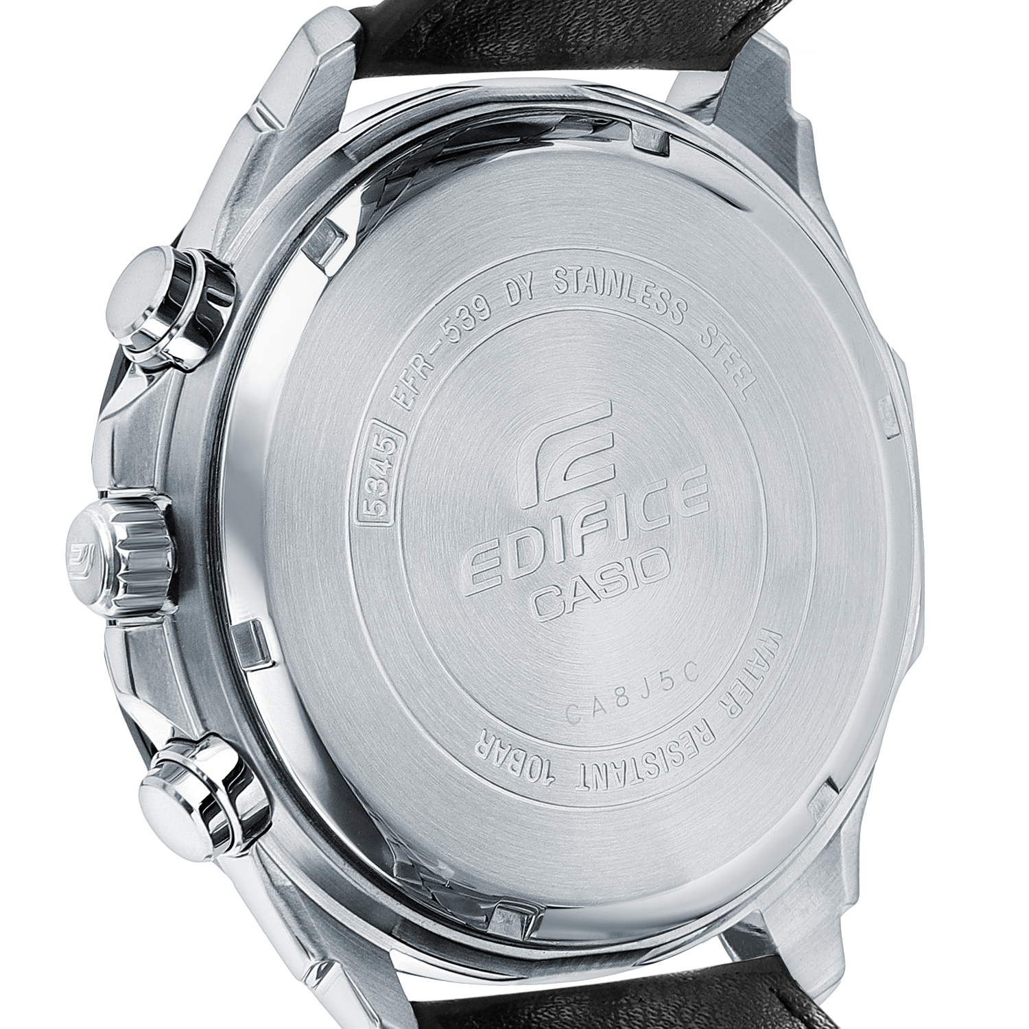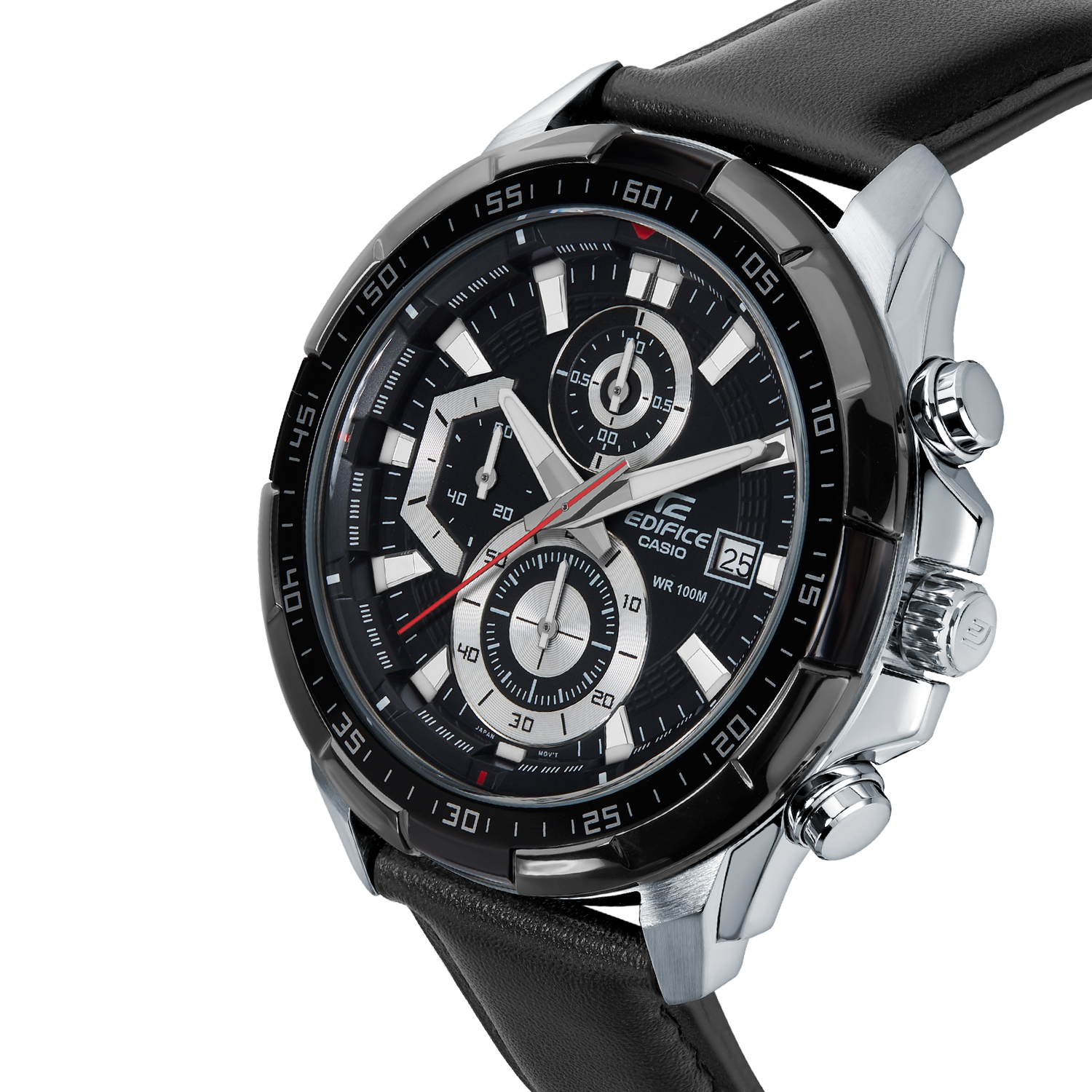 Перед вами харизматичная и узнаваемая модель Edifice со спортивным характером из серии EFR-539 в стальном корпусе с большим аналоговым циферблатом с деталями серебристого цвета на ремешке из натуральной кожи! Помимо яркого современного дизайна на циферблате часов вы найдете три функциональных окошка отвечающих за секундомер, а также отдельное отображение текущей даты. Как и все эдифайсы часы водонепроницаемы, а циферблат защищен закаленным минеральным стеклом.