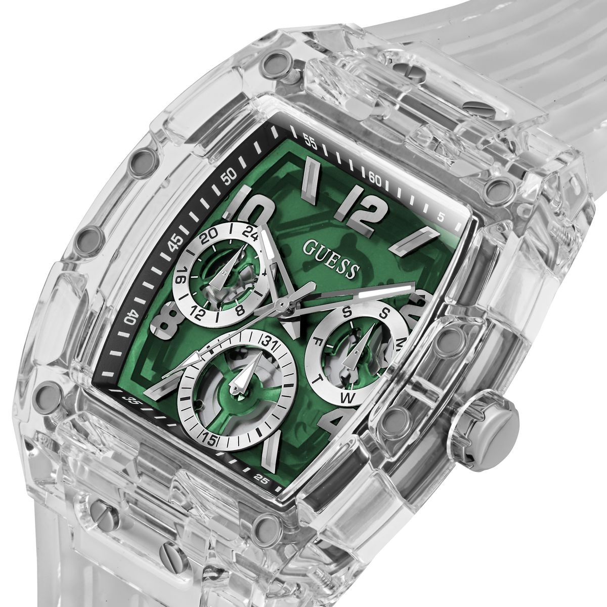 Мужские наручные часы GUESS модель GW0499G8 из коллекции GUESS TREND. Японский кварцевый мультифункциональный механизм VX7JE2S SEIKO (TMI) с вынесенными на отдельные циферблаты датой, днем недели и часовой стрелкой в режиме 24 часа использующий элемент питания SR927SW. Корпус из поликарбоната размера 41.5 мм. Минеральное стекло. Силиконовый ремешок. Водостойкость 5 АТМ (мытье рук, дождь). GUESS – лидер в индустрии фешен часов по длительности присутствия на рынке и по ширине коллекции, ежегодно создает более 100 новинок. Компания GUESS Watches, основанная в 1984 году в Лос-Анджелесе (США) как пионер революции, возглавила трансформацию часов из простого инструмента для определения времени в стильный аксессуар. Бренд не боится экспериментировать. Разнообразные формы корпуса, сложно декорированные циферблаты, уникальный дизайн браслетов. GUESS – это про тренды и технологии в мире моды. Это яркие и дизайнерские часы, призванные угодить самым смелым фешн-драйверам и энтузиастам моды по всему миру. Страна-изготовитель: Филиппины. При изготовлении используются только надежные Японские механизмы. ВНИМАНИЕ! Заявленная водостойкость гарантируется только при плотно закрытой или закрученной заводной головке!