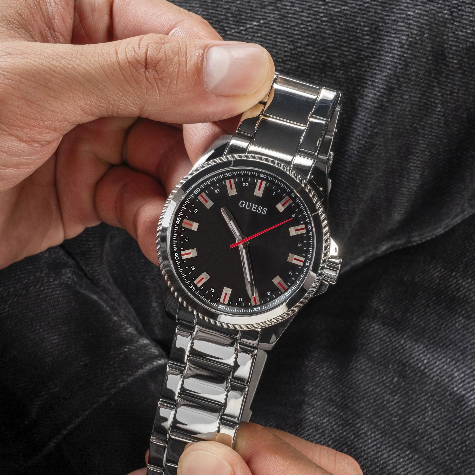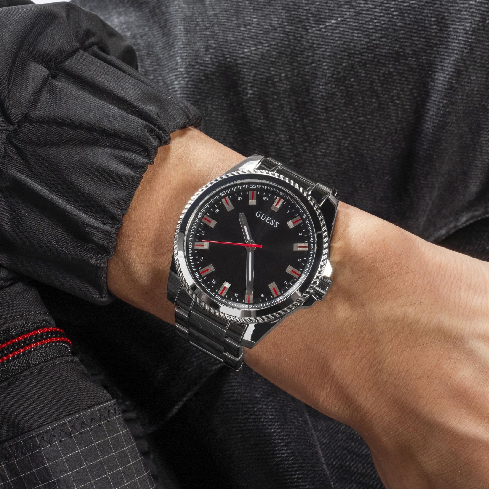 Мужские наручные часы GUESS модель GW0718G1 из коллекции GUESS SPORT. Японский кварцевый механизм Y121 SEIKO (TMI) использующий элемент питания SR626SW. Стальной корпус размера 44 мм. Минеральное стекло. Стальной браслет. Водостойкость 5 АТМ (мытье рук, дождь). GUESS – лидер в индустрии фешен часов по длительности присутствия на рынке и по ширине коллекции, ежегодно создает более 100 новинок. Компания GUESS Watches, основанная в 1984 году в Лос-Анджелесе (США) как пионер революции, возглавила трансформацию часов из простого инструмента для определения времени в стильный аксессуар. Бренд не боится экспериментировать. Разнообразные формы корпуса, сложно декорированные циферблаты, уникальный дизайн браслетов. GUESS – это про тренды и технологии в мире моды. Это яркие и дизайнерские часы, призванные угодить самым смелым фешн-драйверам и энтузиастам моды по всему миру. Страна-изготовитель: Филиппины. При изготовлении используются только надежные Японские механизмы. ВНИМАНИЕ! Заявленная водостойкость гарантируется только при плотно закрытой или закрученной заводной головке!