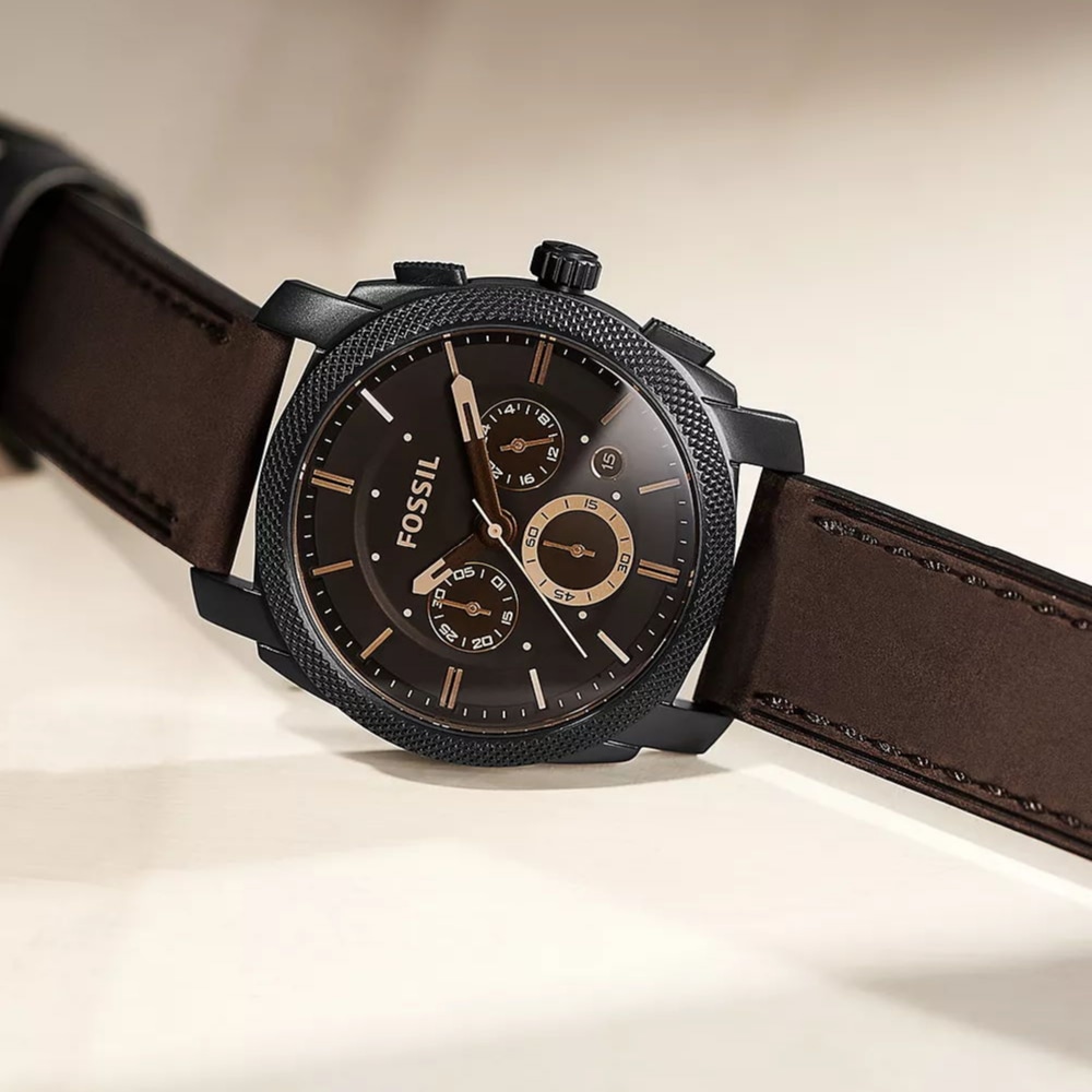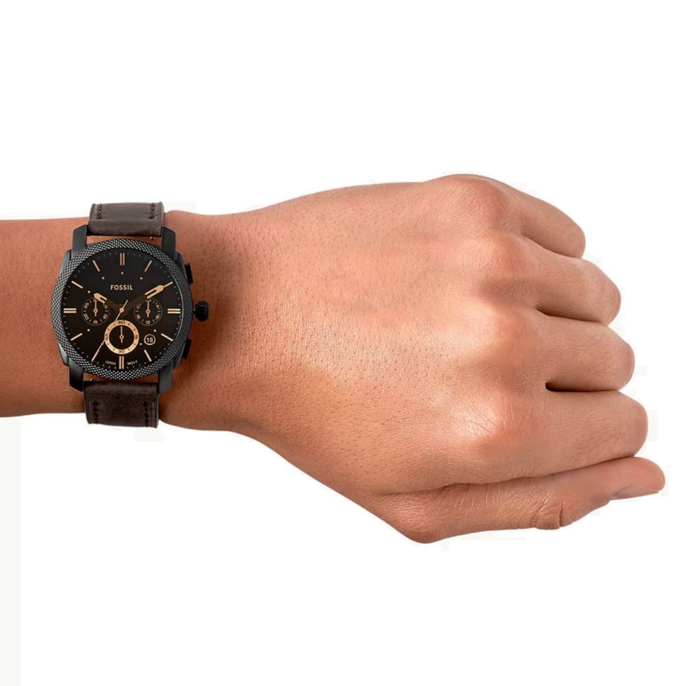 Мужские наручные часы FOSSIL модель FS4656 из коллекции MACHINE Кварцевая модель хронограф с окошком даты и 24-часовом отсчетом времени. Стальной корпус размера 42 мм. Минеральное стекло. Ремошок выполнен из натуральной кожи. Водостойкость 5 АТМ (мытье рук, дождь). Бренд Fossil родом из Техаса, США. Производство часов находится в Китае. При изготовлении используются только надежные Японские механизмы. ВНИМАНИЕ! Заявленная водостойкость гарантируется только при плотно закрытой или закрученной заводной головке!