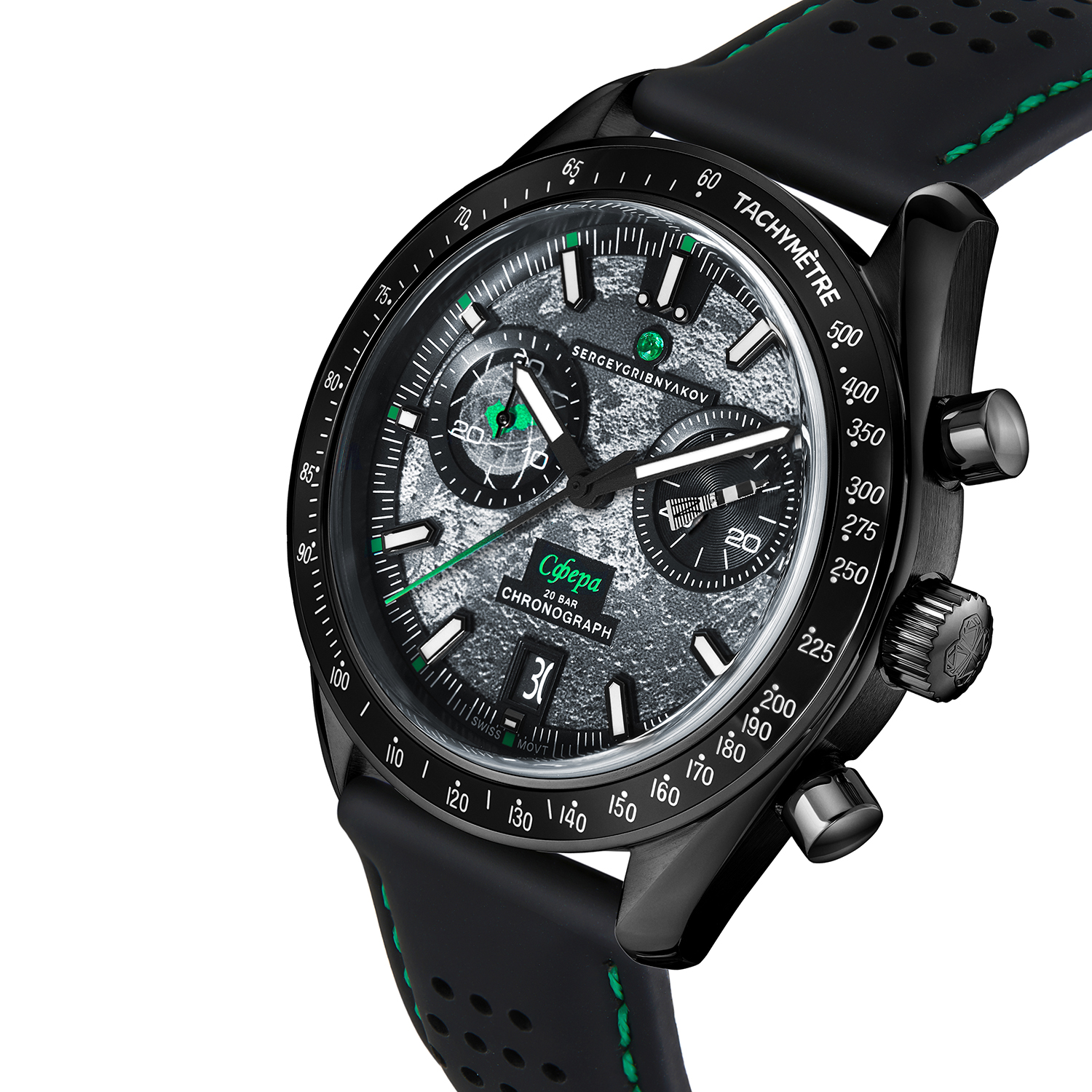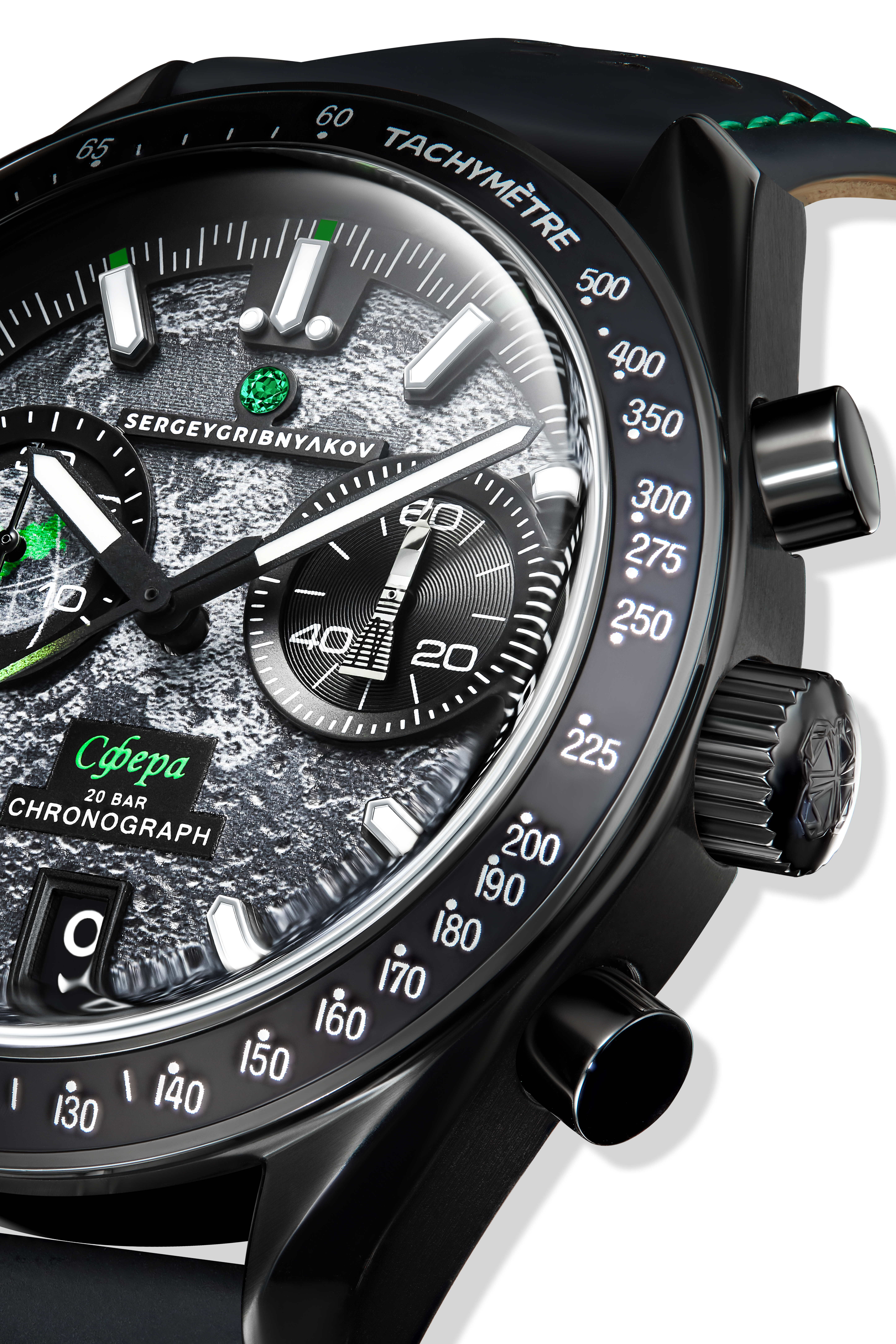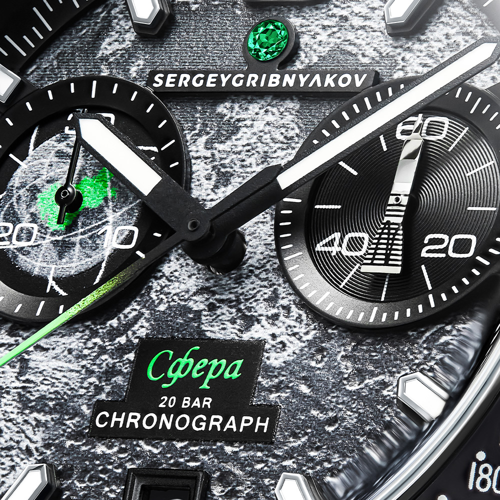 Наручные кварцевые мужские часы марки SERGEY GRIBNYAKOV артикул GD2-44-4-YYA-SL-BBB. Данная модель вышла в 2025 году в рамках коллекции "Достояние России". Эти часы созданы для профессионалов экстремальных профессий, чья работа требует абсолютной надежности. Подсветка Luminova дает возможность пользоваться часами в темное время суток. Надежный швейцарский кварцевый механизм Ronda Z50 оснащен функциями времени в 12 часовом формате, датой и хронографом. Отличительной особенностью данных часов является выращенный изумруд, украшающий циферблат. Корпус из нержавеющей стали 316L размера 44 мм. Сапфировое с антиблитковым покрытием стекло. Ремень из натуральной кожи. Водозащита 20 bar (200 m/660 ft)* позволяет плавать в часах.На безель данной модели нанесена тахиметрическая шкала. *Давление выраженное в атмосферах и метрах не должно рассматриваться как эквивалент глубине погружения в воду. Герметичность часов обеспечена специальными уплотнителями на задней крышке, кнопках и переводной коронке. Герметичность сохраняется в закрытом положении всех элементов. Не подвергайте часы нагреву, так как он способен привести к деформации уплотнителей.