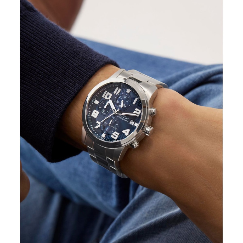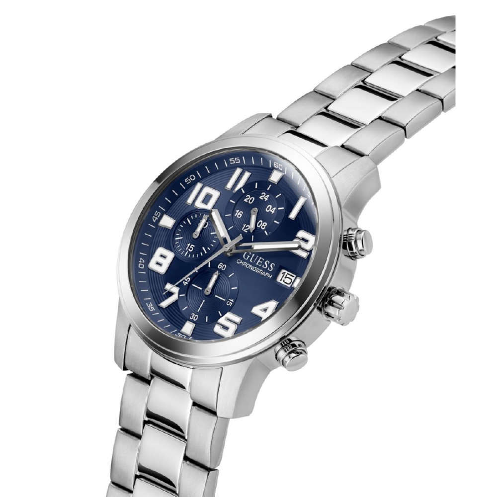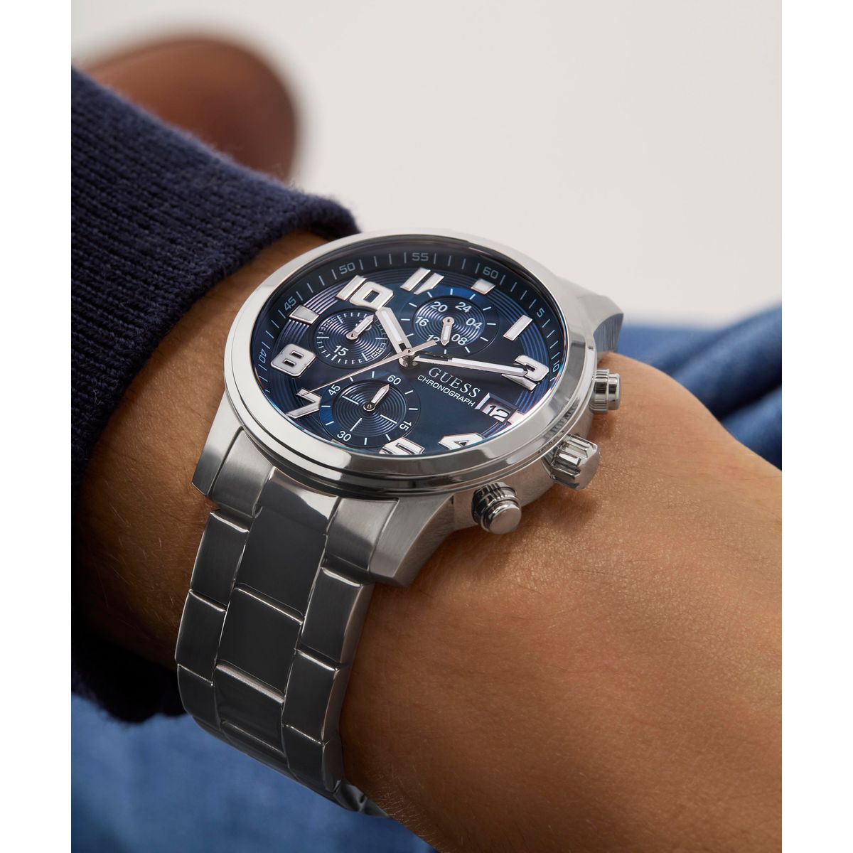 Новинка из коллекции GUESS зима-весна 2025! Мужская кварцевая модель с функцией секундомера GW0917G1. Стальной корпус диаметром 44 мм. Метки в виде римских цифр и индексов. Время в 24-х часовом формате, окошко дата и функция 30 минутного хронографа на отдельных циферблатах. Рифленая заводная головка. Минеральное стекло. Раскладывающаяся застежка с кнопками с двух сторон. Штаб-квартира компании GUESS расположена в Лос-Анджелес США. Часы марки производятся на дву заводах компании, расположенных в Китае и на Филиппинах. У нас представлены модели выпущенные на Филиппинском заводе. В моделях используются надежные японские механизмы Miyota и Seiko.