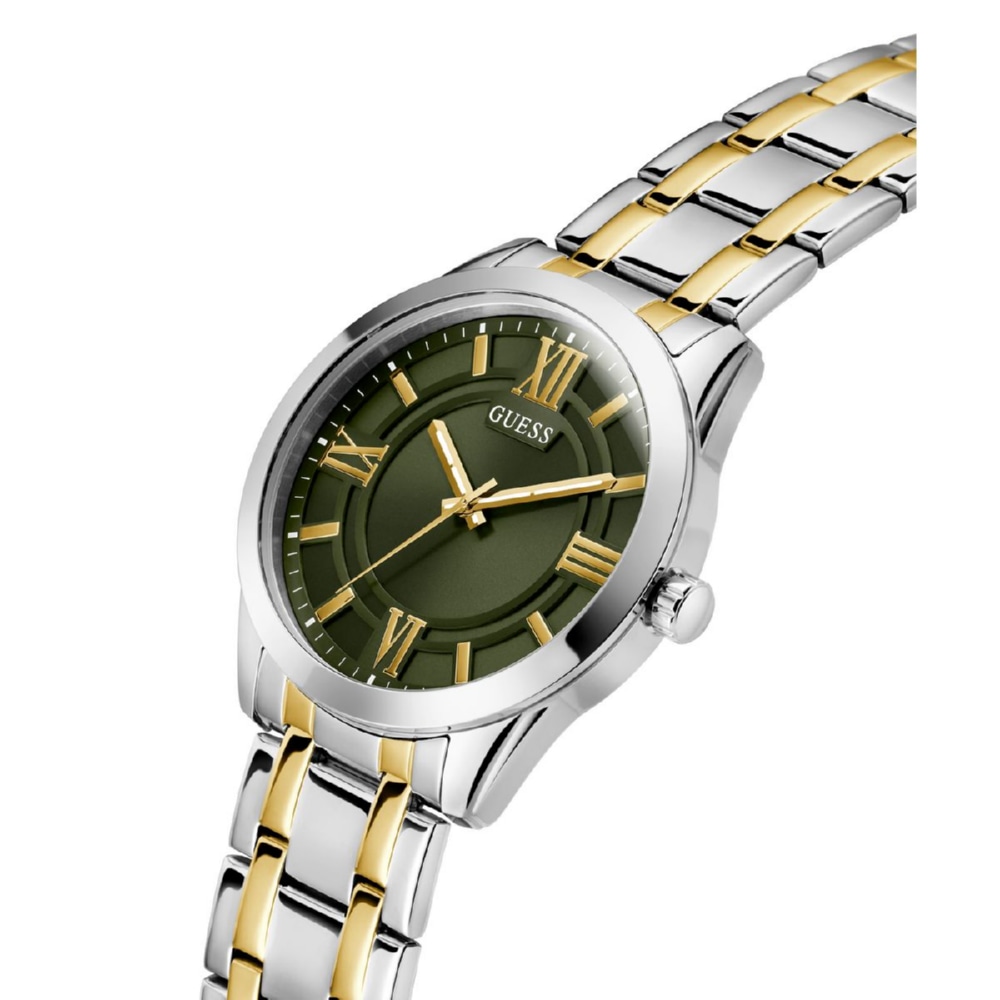Новинка из коллекции GUESS зима-весна 2025! Мужская классическая кварцевая модель GW0893G1. Стальной корпус диаметром 44 мм и толщиной 10 мм. Разноуровневый циферблат зеленого цвета с золотистыми стрелками и индексами. Минеральное стекло. Раскладывающаяся застежка с кнопками с двух сторон. Водостойкость 5 АТМ (мытье рук, дождь). GUESS – лидер в индустрии фешен часов по длительности присутствия на рынке и по ширине коллекции, ежегодно создает более 100 новинок. Компания GUESS Watches, основанная в 1984 году в Лос-Анджелесе (США) как пионер революции, возглавила трансформацию часов из простого инструмента для определения времени в стильный аксессуар. Бренд не боится экспериментировать. Разнообразные формы корпуса, сложно декорированные циферблаты, уникальный дизайн браслетов. GUESS – это про тренды и технологии в мире моды. Это яркие и дизайнерские часы, призванные угодить самым смелым фешн-драйверам и энтузиастам моды по всему миру. Страна-изготовитель: Филиппины. При изготовлении используются только надежные Японские механизмы. ВНИМАНИЕ! Заявленная водостойкость гарантируется только при плотно закрытой или закрученной заводной головке!