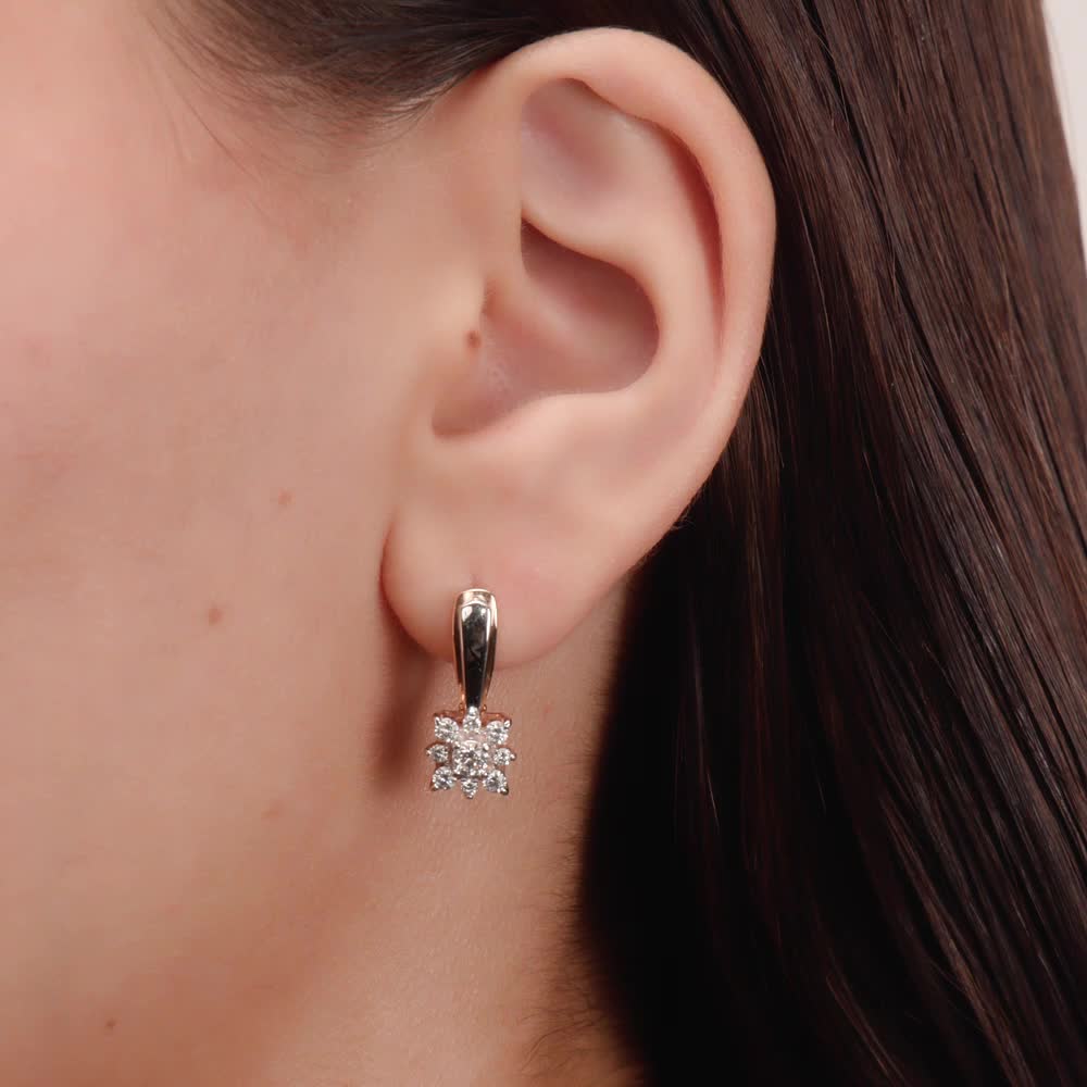 Серьги с 2 бриллиантами природными, 0.34 карат, огранка круг 57 граней, цвет 3, чистота 6, тип огранки А;