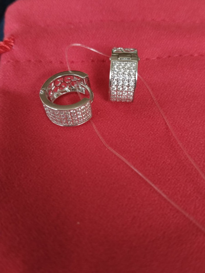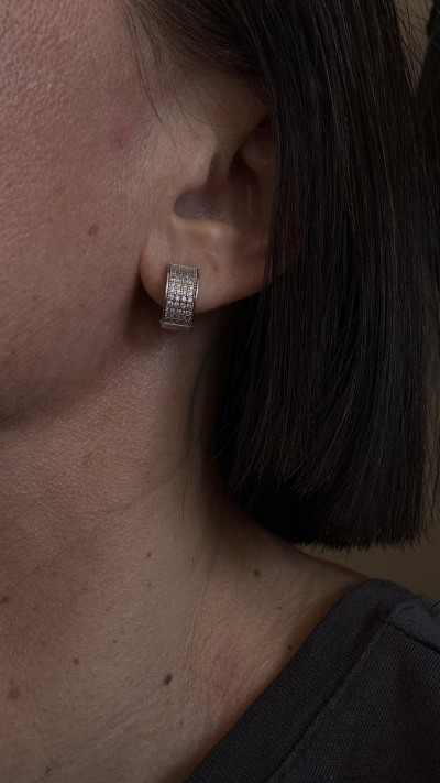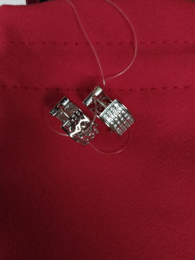 Маленькие, аккуратные. Сидят на ушке очень. Фианиты переливаются.