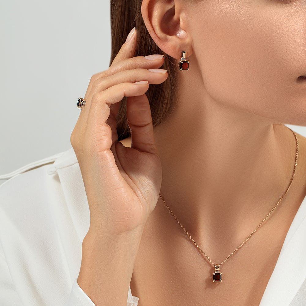 Насыщенный и страстный ярко-красный гранат, заключенный в роскошную золотую оправу. Гранат - символ любви, верности и мужества.