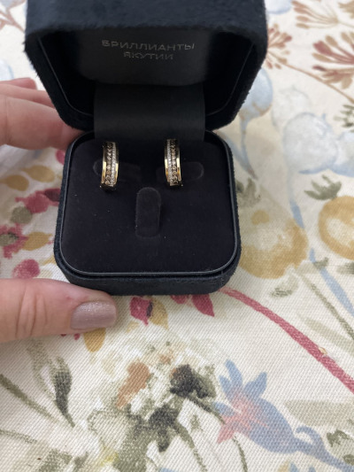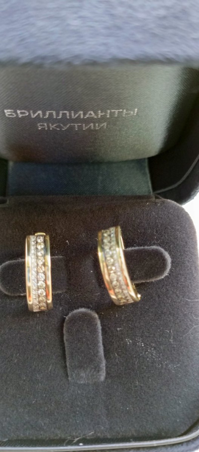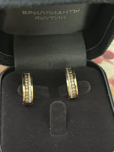 Долго выбирала серёжки. Мне очень понравились эти великолепные серьги.На ушках хорошо смотрятся, не маленькие. Дорожка из коньячных и белых бриллиатов. Покупкой довольна.
