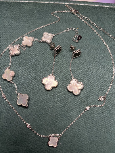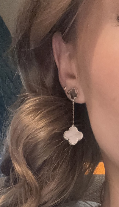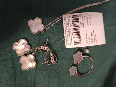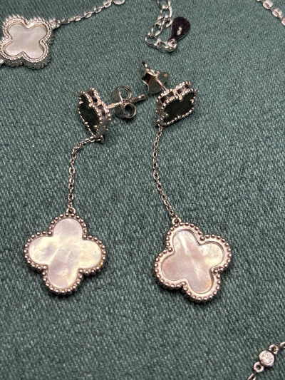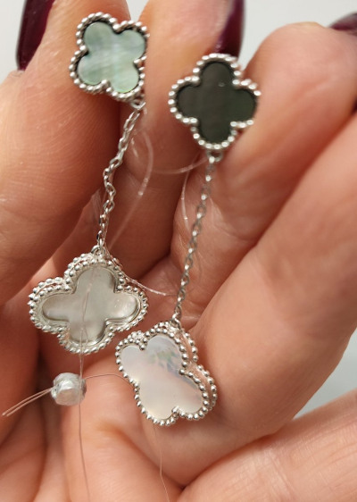 Искала под колечко сережки из перламутра в форме клевера среднего размера, но так не нашла, приобрела такие серьги верхний клевер темного цвета перламутра маленького размера, а нижний клевер белого цвета перламутра большого размера, очень замечательные сережки, перламутр великолепен, на них обращают внимание. Советую к покупке.