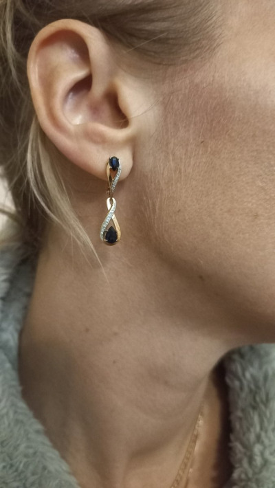 Торжественные серьги, но можно выходить и на повседневку. Нетяжелые, уши не оттягивают, подойдут на средний прокол идеально. Замок отличный, сапфиры глубокого синего цвета.