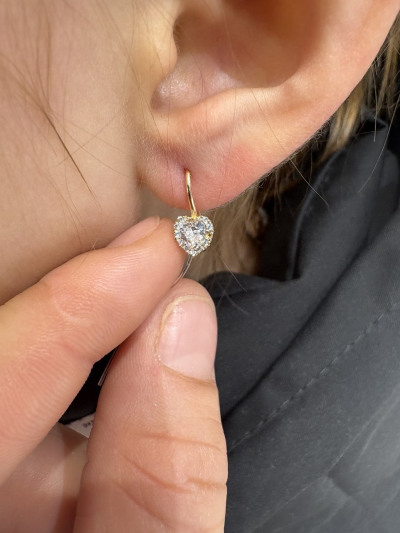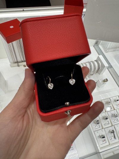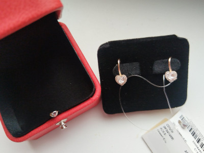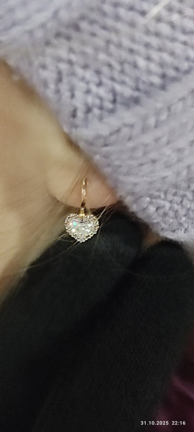 Сегодня приобрела в подарок для внучки эти замечательные серёжки в форме сердца с фианитами, очень красивые, удобный французский замок как раз для деток, фианиты очень красиво играют на свету, ещё сделали скидку 👍 , рекомендую к покупке