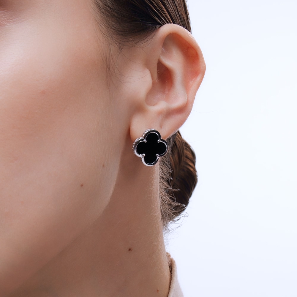 Серьги, вставка: керамика черная;