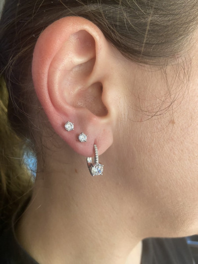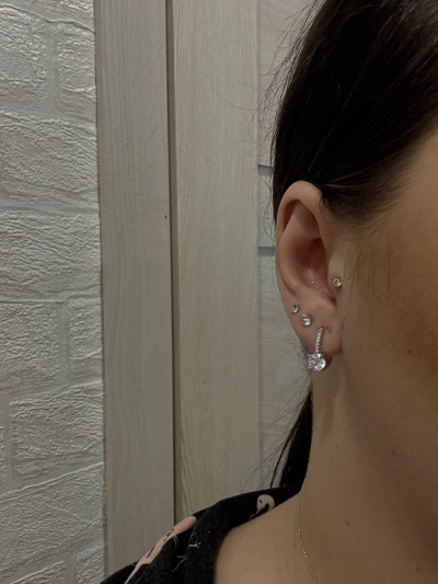Понравились серьги, сразу добавила их в корзину и потом уже посмотрела лично у магазине , примерила , оказалось то что нужно. Искала именно с фианитами , небольшими и не маленькими, и чтобы в совокупности с другими моими проколами хорошо смотрелось . Не прогадала👍
