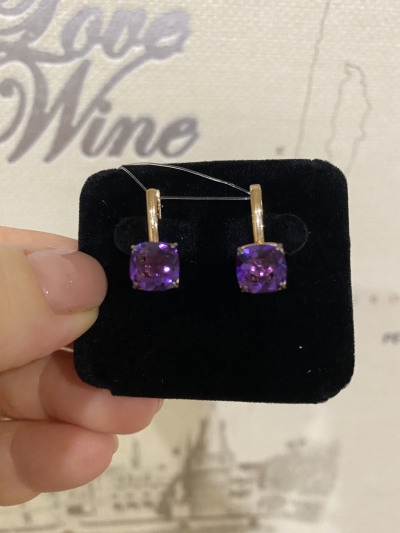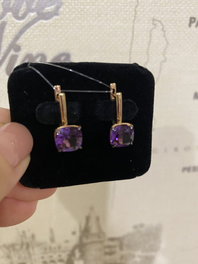 • Серьги с 2 аметистами природными, тип огранки Б;