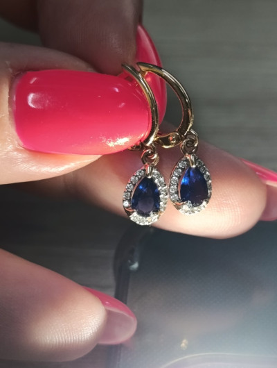 Красивые серьги с подвесными элементом, очень красиво смотрятся, брали в подарок. Подарком остались очень довольны, камень играет .