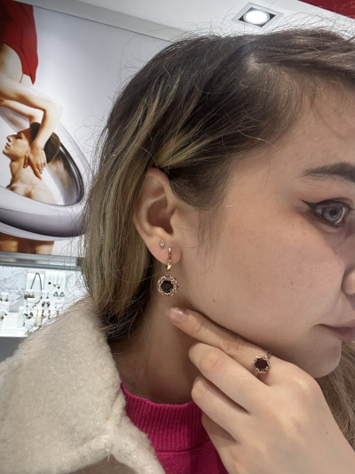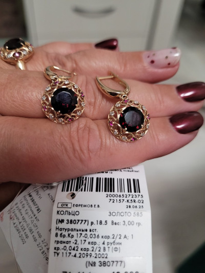 Взяла комплектом с кольцом. Серьги изящные, но не мелкие. С восточными мотивами в оформлении. Все камни натуральные, серьги не тяжёлые, мочку не оттягивают. Подвеска подвижна. Крепление подвески очень тоненькое и завышение штифта столь тонкое, что кажется острым. Экономия драг.металла в комплекте максимальная))), но и цена доступная. Рекомендую!