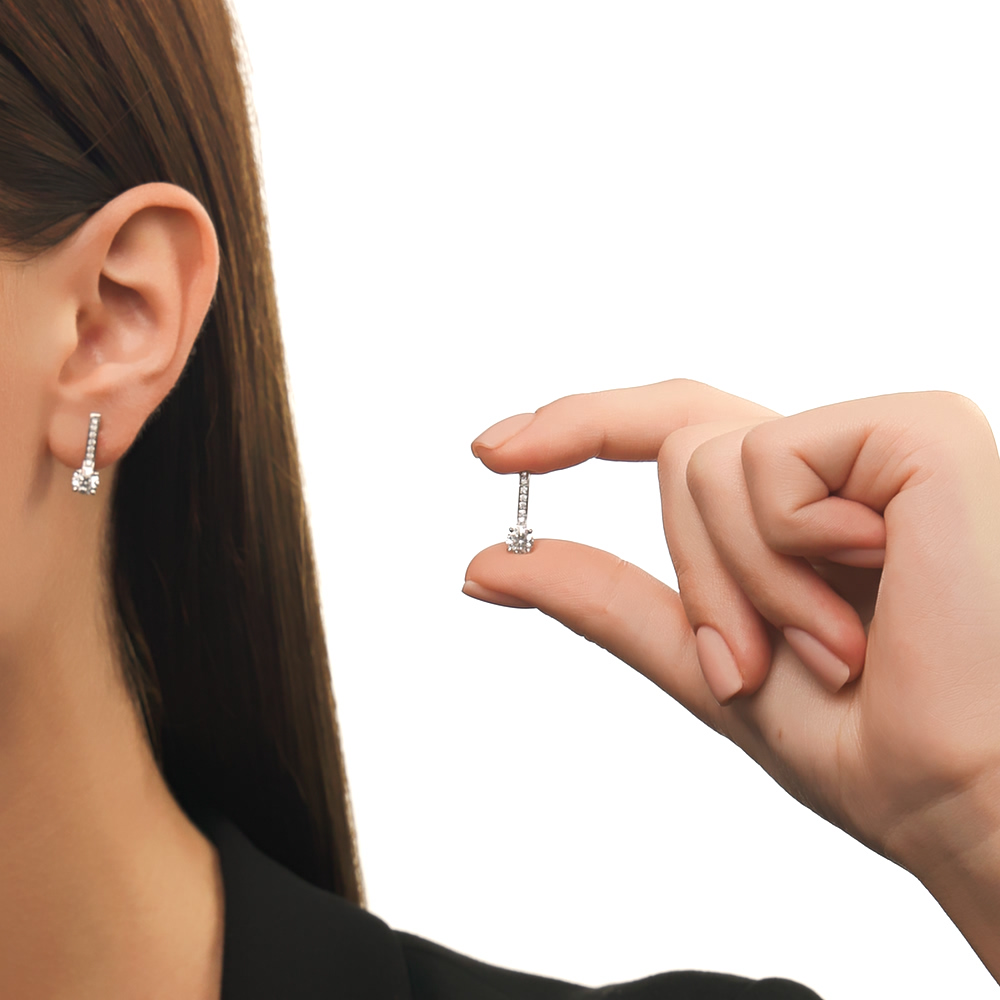 • Серьги с 2 бриллиантами природными, 1.2 карат, огранка круг 57 граней, цвет 3, чистота 4, тип огранки А;