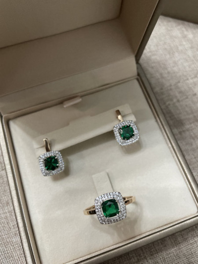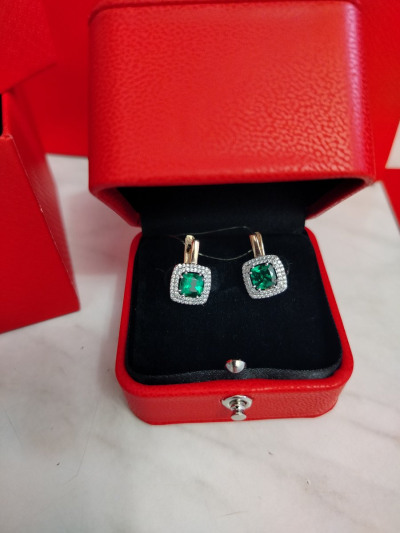 • Серьги, вставка: наноситал изумруд, тип огранки Б;