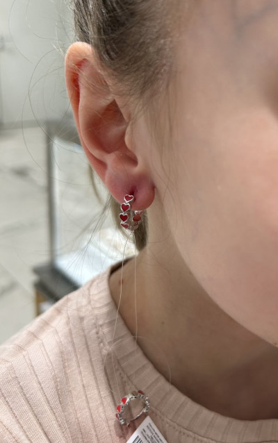 Сережки купили для дочери 10 лет в подарок на 1 июня День защиты детей . Выбирали между красными и белыми, но дочь захотела красные. Очень понравились, носит с удовольствием, даже снимать не хочет. Спасибо огромное за красивый товар.