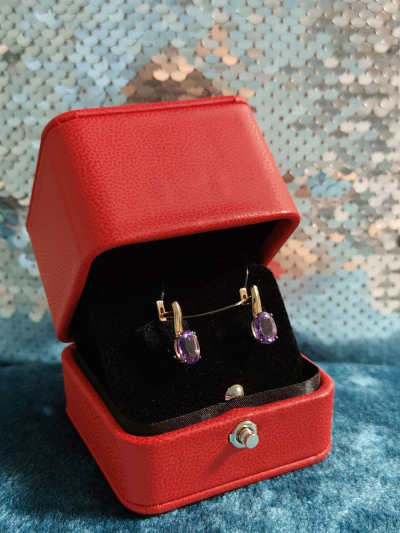 В редких случаях характеристики украшения или упаковка могут иметь отличия от представленных на фото или в описании.Серьги с 2 аметистами природными, 2.2 карат;