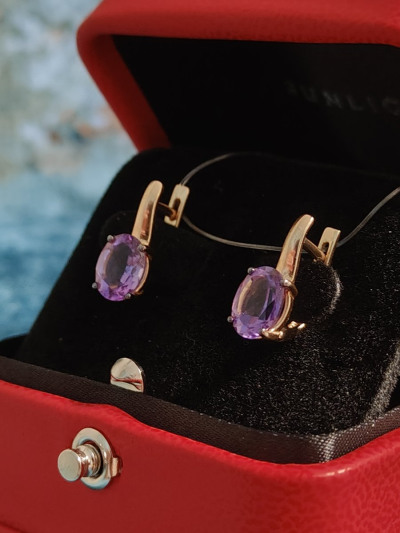 Серьги мне давно понравились. Я заказывала по скидке. На моих серёжках аметист не настолько яркий как на видео, но мне понравились. Они очень нежные, невесомые. Размер для меня самое что нужно. Я в целом довольна очень. Спасибо, Sunlight