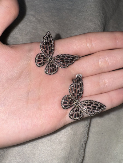 Купила эти сережки в комплекте с колечком и это просто восторг!! очень люблю надевать их, на ушах почти не ощущаются, выглядят дорого, а сверкают просто шикарно😍 уже все знакомые спросили где я брала этот набор 🦋🔥 спасибо за такой крутой набор, притягивающий взгляды окружающих🫶🏻🫶🏻