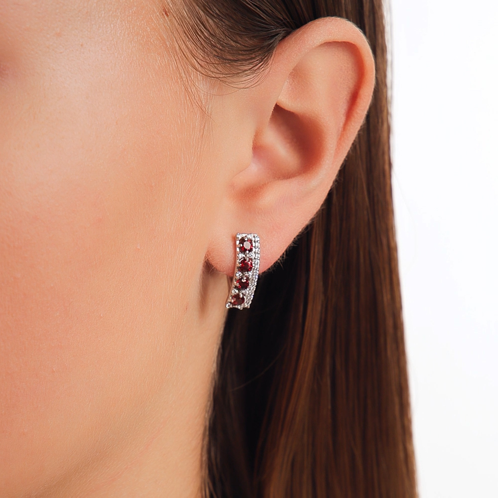 Серебряные серьги с фианитами и гранатами природными