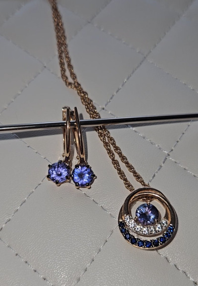Танзаниты крупные, яркие. В комплекте с подвеской смотрятся очень классно.