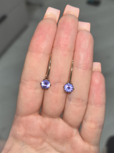 • Серьги с 2 танзанитами природными, 1.86 карат, тип огранки В;
