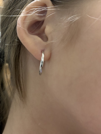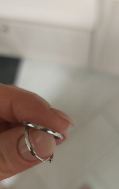 Купили для дочери, хотела очень серьги кольца, очень красивые, блестят за счет узора. Смотрятся очень аккуратно, не слишком большие