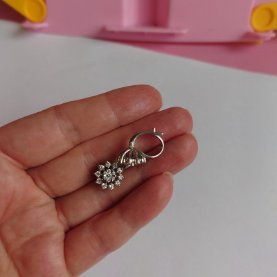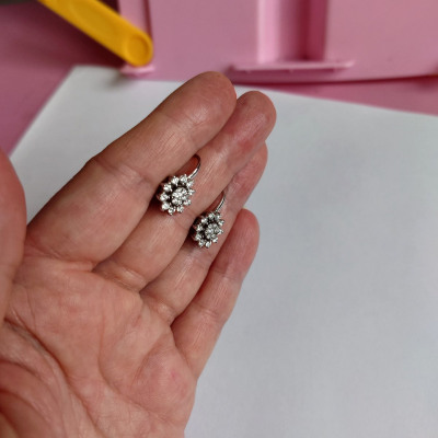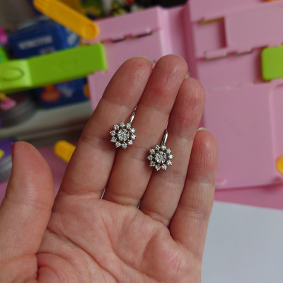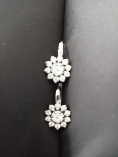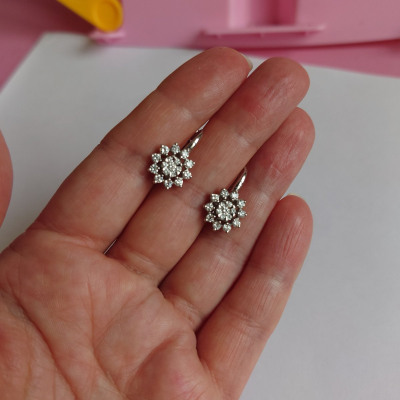 Яркие, красивые серьги с бриллиантами в виде цветочка. Смотрятся нежно, аккуратные