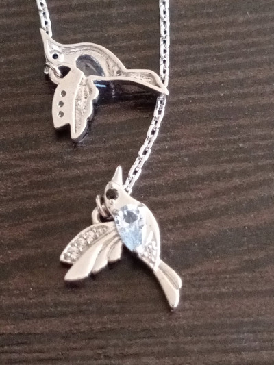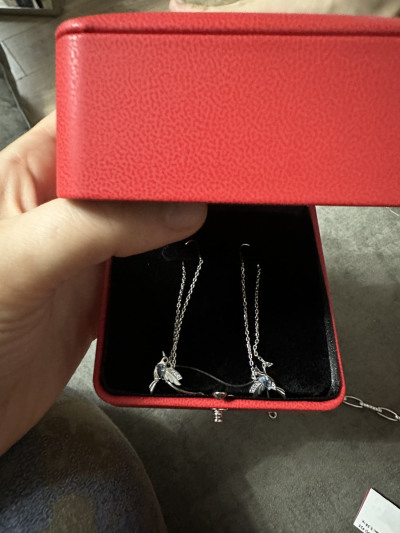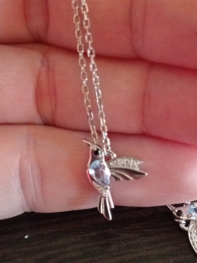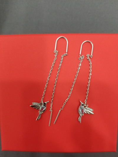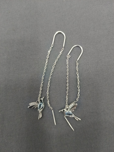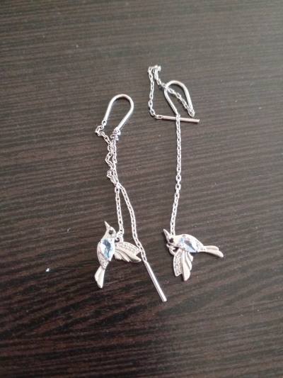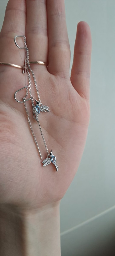 Эти серьги сразу привлекли внимание и сразу сделали комплимент и не раз,голубые камушки на солнце бликуют и сама задумка птичек оригинальна,они лёгкие и красиво висят на ушке как птичка летая.
