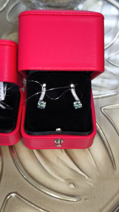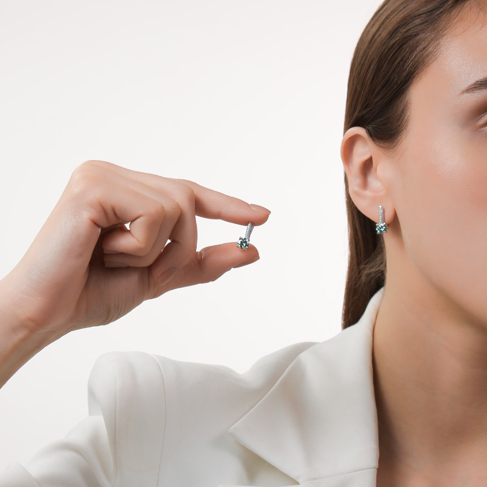 Серьги с 2 муассанитами параиба, 1.6 карат;