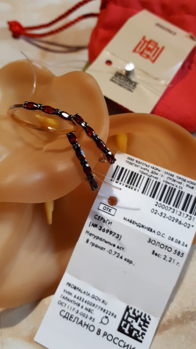 Очаровательные серьги с чудесными гранатами. Занижение штифта 3 мм. Длина 18 мм. Ширина 2,5 мм. Английский крепкий замок, при застегивании издается звонкий щелчок. Камни бордового цвета с красными всполохами. Советую всем заказать себе или для подарка эту прелесть, не разочаруетесь. Заказывала с кольцом. Спасибо, Мой Дорогой "SUNLIGHT" за быструю доставку в магазин "SLг. Люберцы" и доставленное удовольствие от покупки с хорошей скидкой. Желаю ВСЕМ Сотрудникам Компании "Солнечный Свет" ВСЕХ Благ и Удачи во Всем. ВЫ САМЫЕ ЛУЧШИЕ!❤🙏🌹