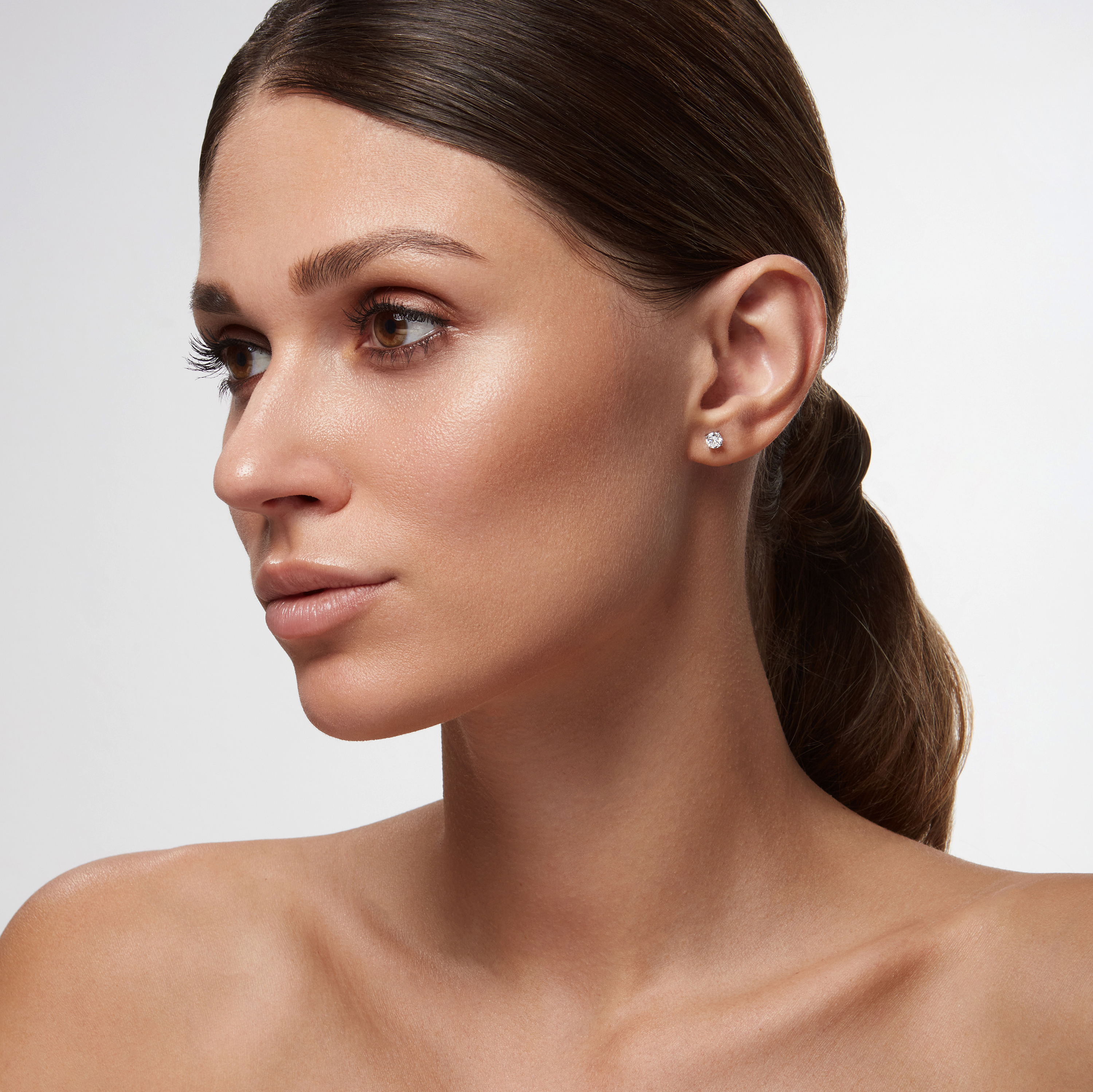 Серьги с 2 бриллиантами выращенными, 1.04 карат, огранка круг 57 граней, цвет 4, чистота 6, тип огранки А;